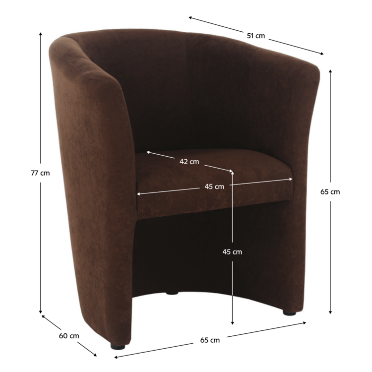 V teplom kresle z mikrofázy zažijete relax a oddych. Decentná hnedá farba kresla prinesie lásku do vašej duše, a samozrejme úžasne doplní a zjednotí interiér. Premeňte svoj domov na štýlové miesto a vyberte si kreslo CUBA. Okrem toho, že je praktické, dýcha aj novým dizajnom. Svojim priaznivcom poskytuje príjemné sedenie. Jadro sedadla tvorí purpena s výškou sedu 45 cm a hĺbkou sedu 45 cm.