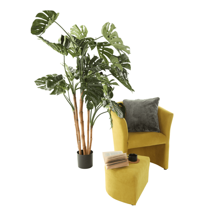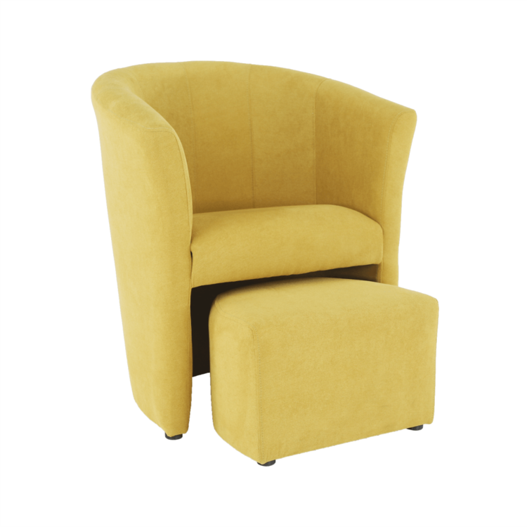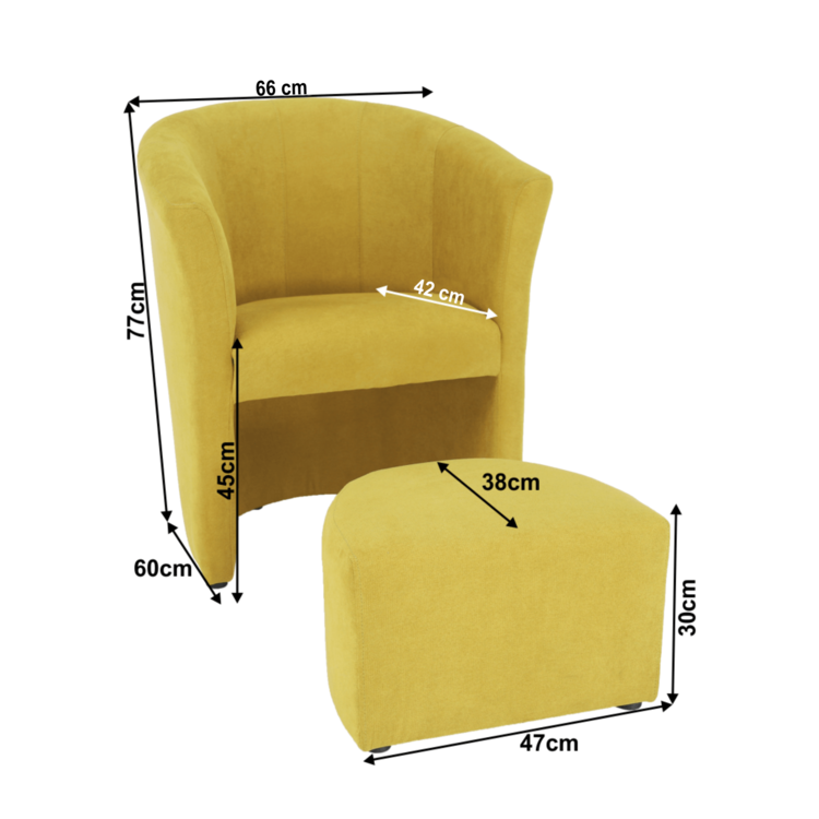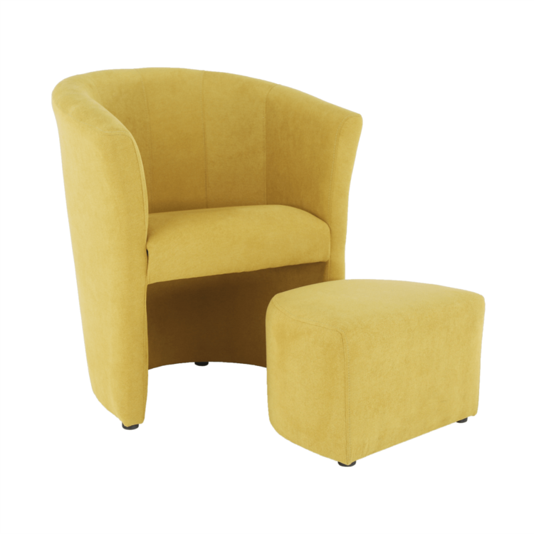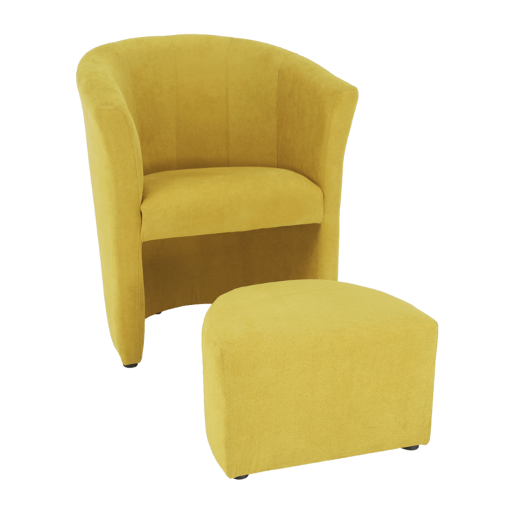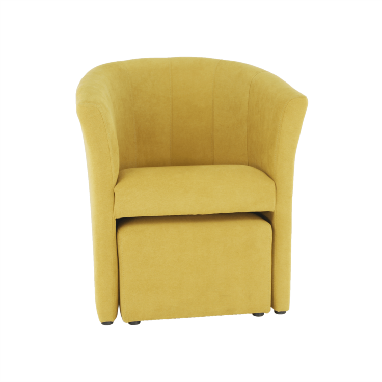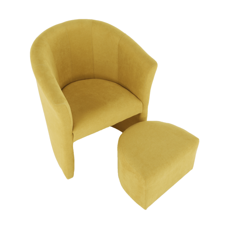 Klubové kreslo s taburetom ROSE je spojenie toho najlepšieho. Sú celočalúnené látkou v horčicovej farbe. Taburet je prispôsobený tak, aby ste ho mohli kedykoľvek zasunúť pod kreslo.
