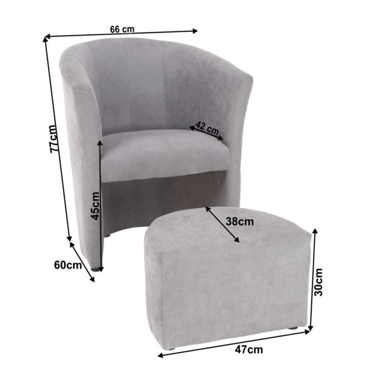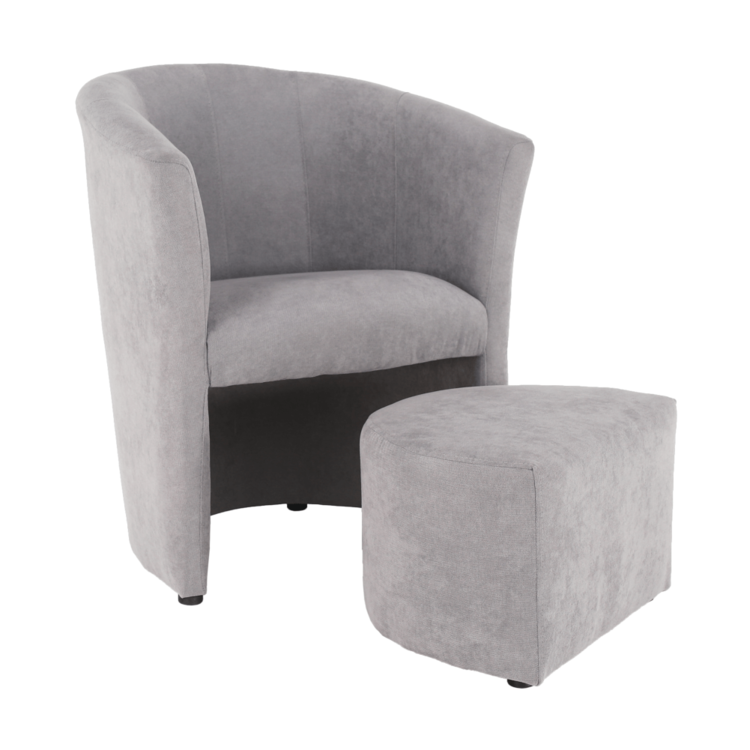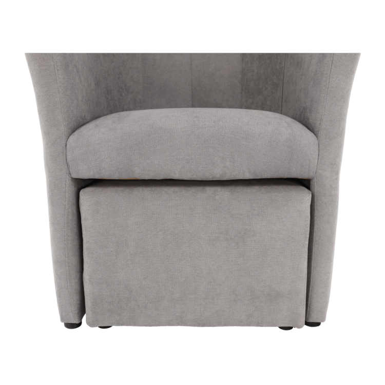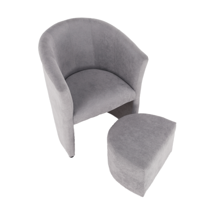 Klubové kreslo s taburetom ROSE je spojenie toho najlepšieho. Sú celočalúnené látkou v sivej farbe. Taburet je prispôsobený tak, aby ste ho mohli kedykoľvek zasunúť pod kreslo.
