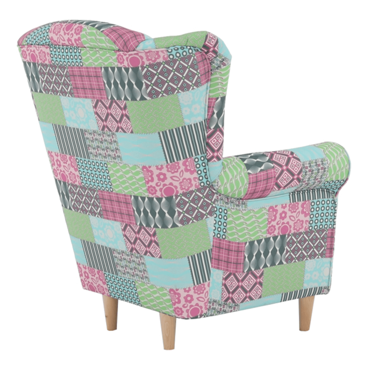 Opierka chrbta je vysoká až 70 cm a tvarovaná, a tak pomáha predísť bolestiam chrbtice a krku. Mohutné opierky rúk poskytnú relax vašim rukám. Užívajte si veľmi príjemné a pohodlné sedenie. Jadro je tvorené PUR penou, ktorá vyniká výbornými vlastnosťami. Na začiatku je tuhšia, no používaním sa stáva komfortnejšia bez toho, aby strácala na objeme. Kreslo CHARLOT ponúkame v prevedenílátky patchwork M1. Stabilita kresla je zabezpečená vďaka dreveným nožičkám vo farebnom prevedení buk.