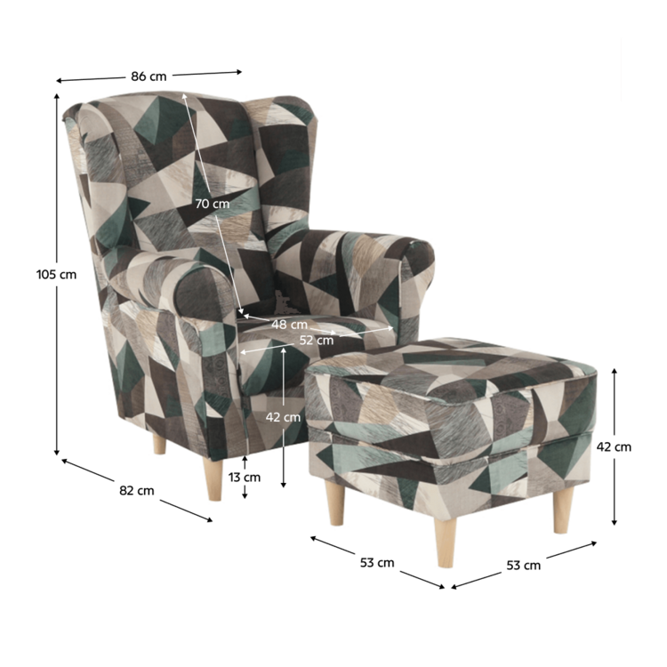 TV ušiak ASTRID v hnedozelenej látke Holm so vzorom si obľúbite už po prvom sedení. Sedacia časť je vyplnená PUR penou, ktorá vyniká výbornými vlastnosťami. Na začiatku je tuhšia, no používaním sa stáva komfortnejšia bez toho, aby strácala na objeme. Pocit pohodlia násobí šikovný taburet, ktorý je súčasťou kresla. Taburet poskytne vašim nohám dokonalú úľavu. Má aj iné praktické využitie, napr. na sedenie, alebo poslúži ako pomocná odkladacia plocha.