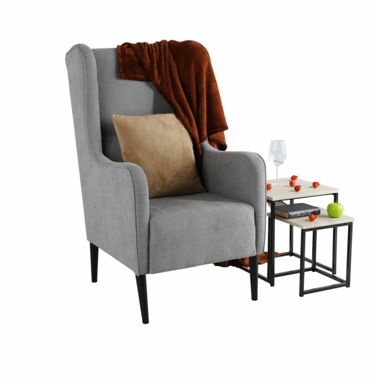 Už na prvý pohľad upúta hlavne svojou výškou, ktorá je až 117 cm. Čalúnené je látkou v sivom prevedení. Stabilitu zabezpečujú drevené nohy v čiernej farbe. Potešte svojich starých rodičov a darujte im pohodlné kreslo pre ich dokonalý oddych. Dedko dostane kresielko, v ktorom môže sladko driemať. Babka pomocníka, v ktorom môže veselo háčkovať či pliesť svetre. Kreslo s vyššou opierkou ocení aj mamička, ktorá uspáva svoje dieťa, či otecko, ktorý sa vrátil domov po dlhom únavnom dni.