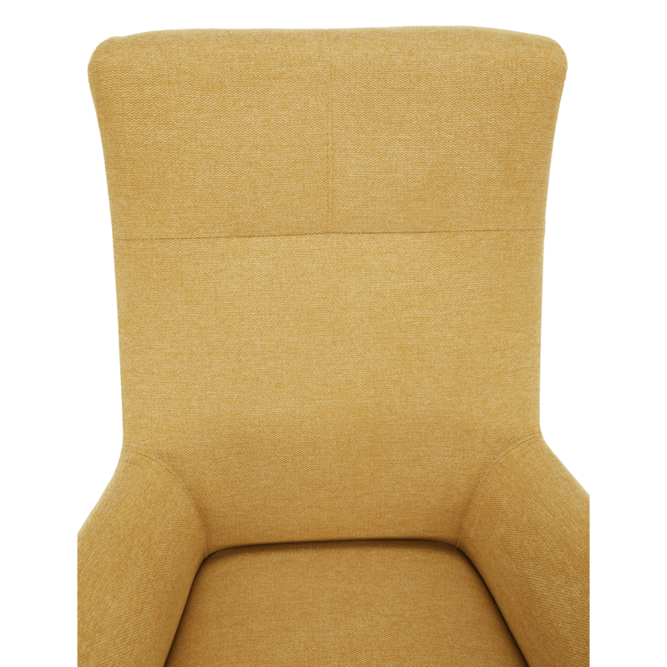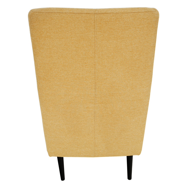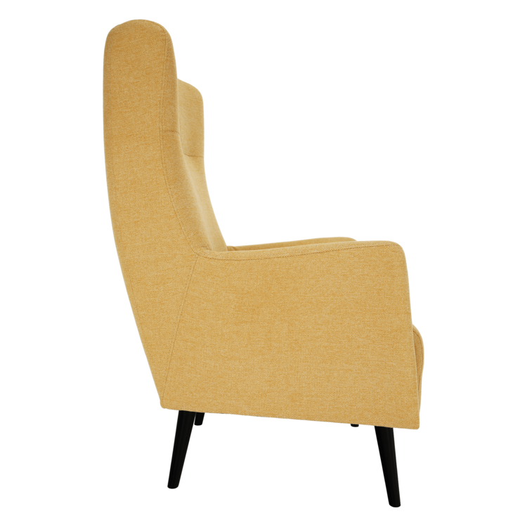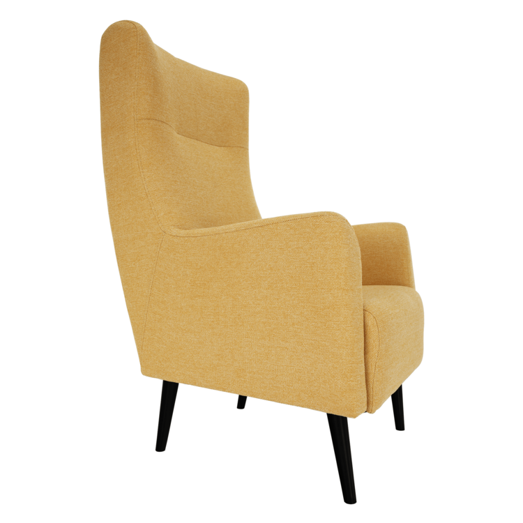 Ušiak SAMY zaraďujeme medzi pohodlné kreslá, pretože má vysoké operadlo chrbta, bočné opierky na hlavu, ale aj opierky na ruky. Kreslo je celočalunené kvalitnou látkou Matana v žltej farbe. Celkový dizajn kresla jemne doplňa ozdobné prešitie na opierke hlavy. Drevené nohy vo farebnom prevedení čierna poskytujú kreslu potrebnú pevnosť a stabilitu. Výplň sedáka poskytuje maximálne pohodlie. Je tvorená pružinami Falista a penou T25.