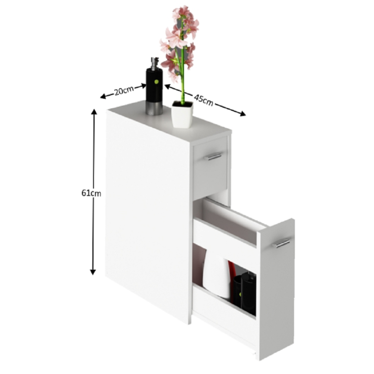 Kúpeľňová skrinka NATALI TYP 7 šetrí miesto, a zároveň poskytne odkladaciu plochu naviac. Ponúka uzavretý úložný priestor, čo ocení každá domácnosť. Skladá sa z jedného šuplíka a vysúvacej skrinky. Je vyrobená z DTD laminovanej vo farebnom prevedení biela. Ide o kvalitný slovenský výrobok.