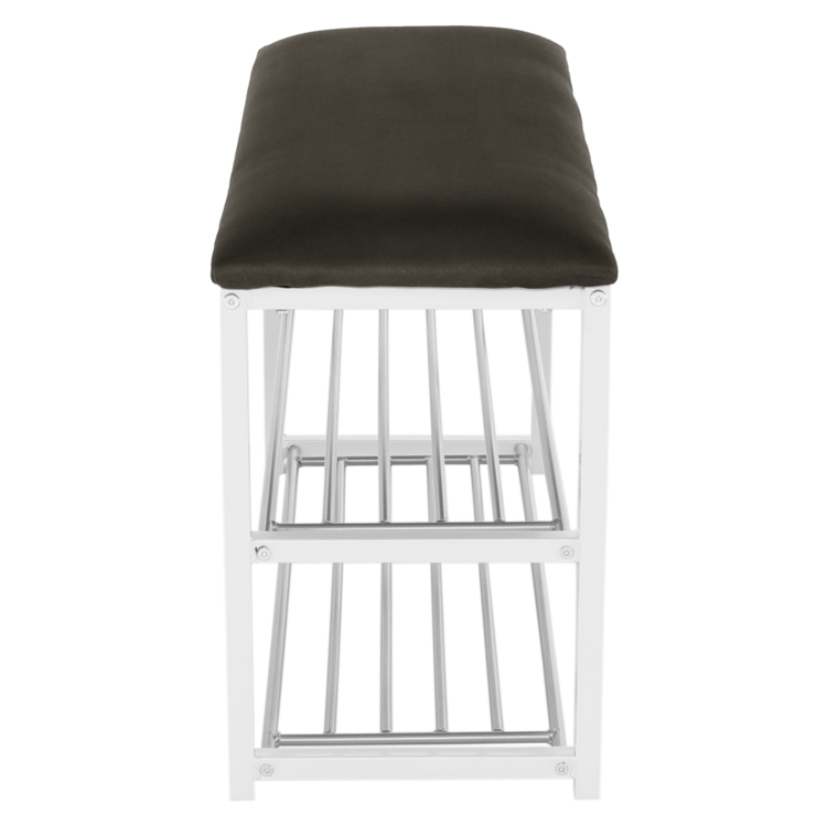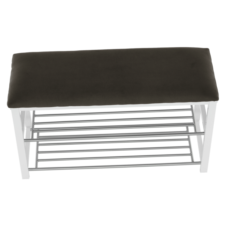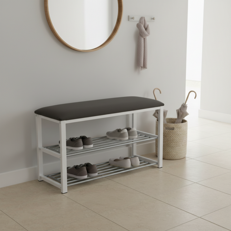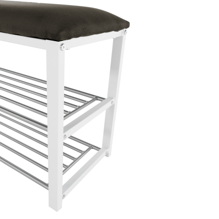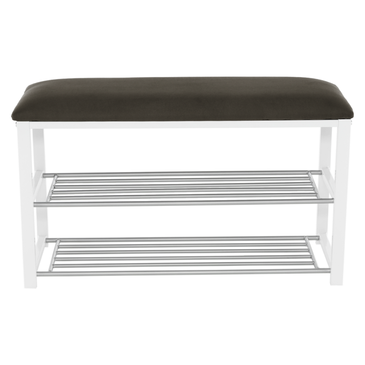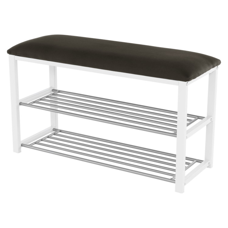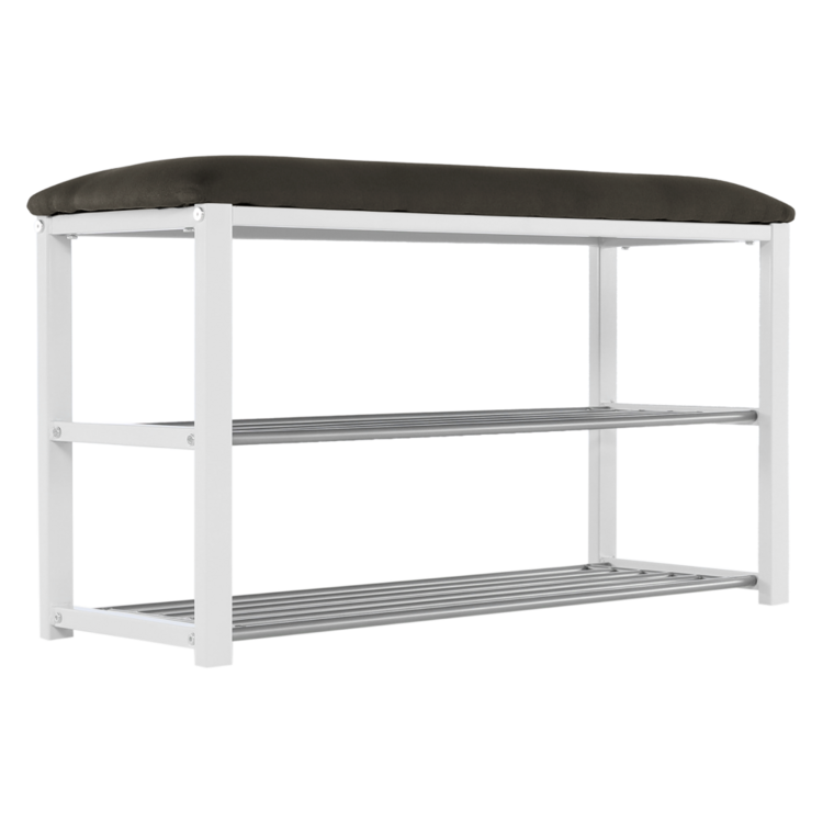 Botník, ktorý zároveň zastupuje nábytok poskytujúci miesto na sedenie. Vyrobený je z kvalitného kovu v bielej farbe a čalúnený látkou vo farebnom prevedení sivá. Viac vás nemusí trápiť otázka, kam odložíte svoje topánky a topánky vašej návštevy.Dve kovové police vám zabezpečia dostatok úložného priestoru. Funkciu sedenia, ktorú botník ponúka, ocenia predovšetkým deti a staršie osoby.