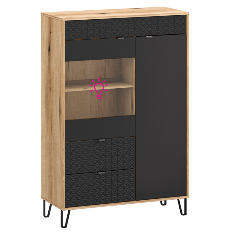 K RTV stolíku OLJE 1S1K ponúkame 2-bodové LED osvetlenie s bielym podfarbením.