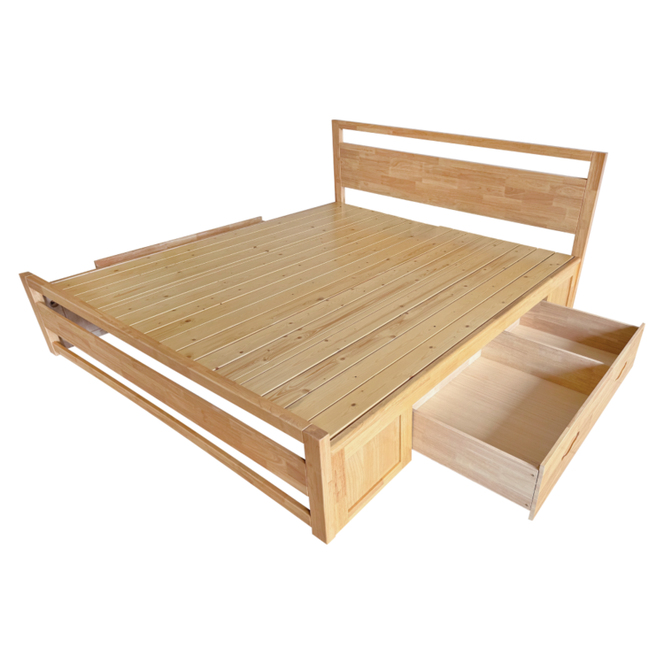 Vyrobená je z kvalitného kaučukového dreva v prírodnej farbe, čo zabezpečí dlhú životnosť a pevnosť postele. Disponuje praktickým úložným priestorom v podobe dvoch šuplíkov, ktoré sa nachádzajú pod posteľov. Môžete ho využiť na odkladanie posteľnej bielizne alebo hračiek. Posteľ je dodávaná s roštom. Rošt obsahuje husto naukladané lamely z borovicového dreva, čím poskytuje optimálnu oporu pre váš matrac. SHEILA je dodávaná bez matraca, ten odporúčame zakúpiť s rozmerom 180x200 cm.