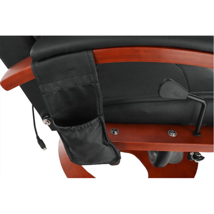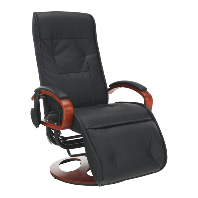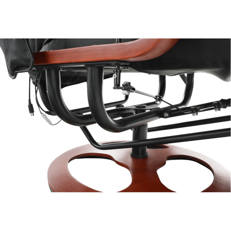 Kreslo je otočné a mechanicky polohovacie. Pomocou páky si jednoducho nastavíte až tri polohy opierky chrbta a podnože. Kreslo je vybavené elektrickou funkciou masáže a vyhrievania. Dajte sa rozmaznávať masážou až v ôsmich masážnych bodoch. Teplo, príjemné teplo, horúco! Kreslo poskytuje vyhrievanie až v piatich stupňoch intenzity. Zaujímavý a efektívny tvar kresla zabezpečuje dostatočnú oporu tela a podnož zas dopraje pohodlie vašim nohám. Materiály použité pri výrobe - ekokoža a split koža - sú pevné a odolné a vo vzájomnej kombinácii pôsobia veľmi štýlovo. Kreslo ponúkame vo farebnom prevedení elegantnej čiernej, drevo ma odtieň čerešne.