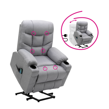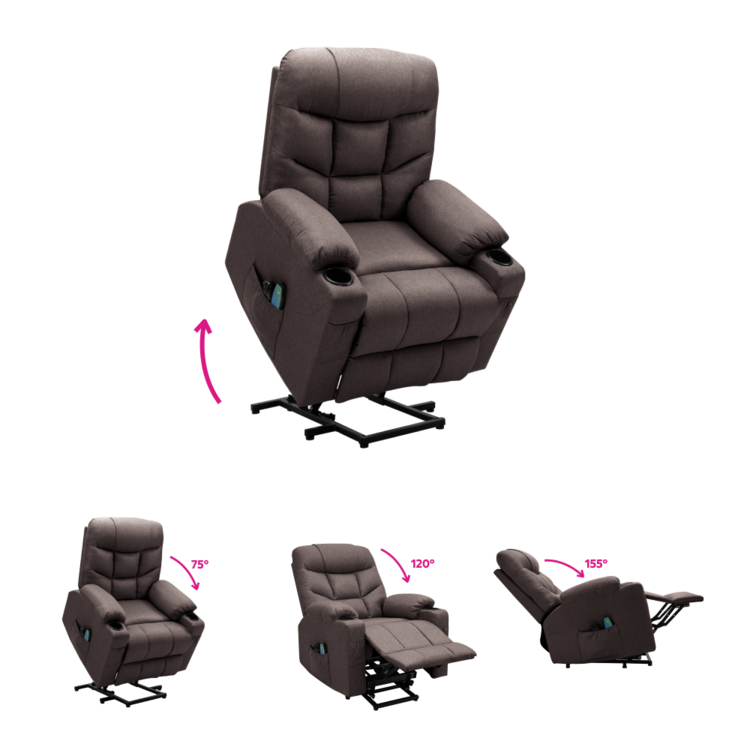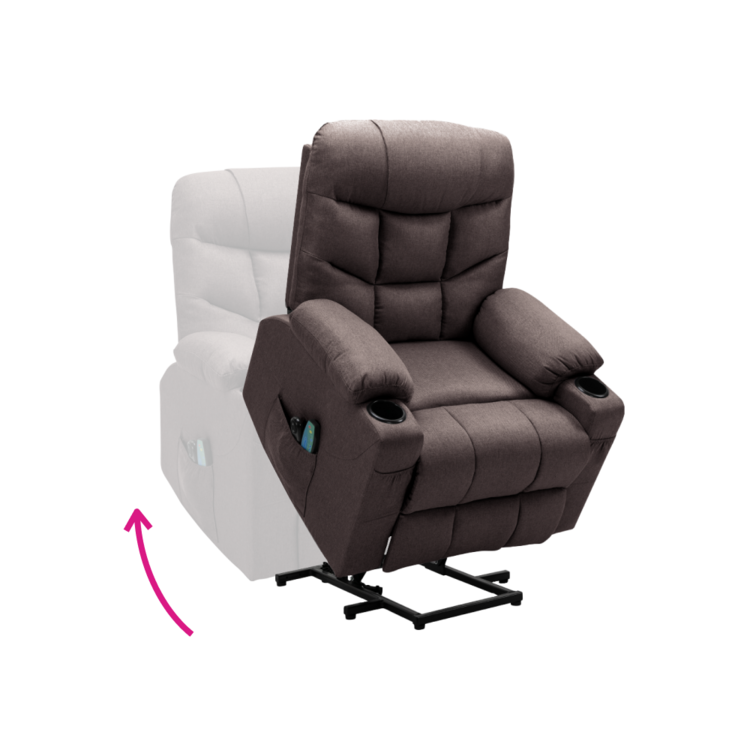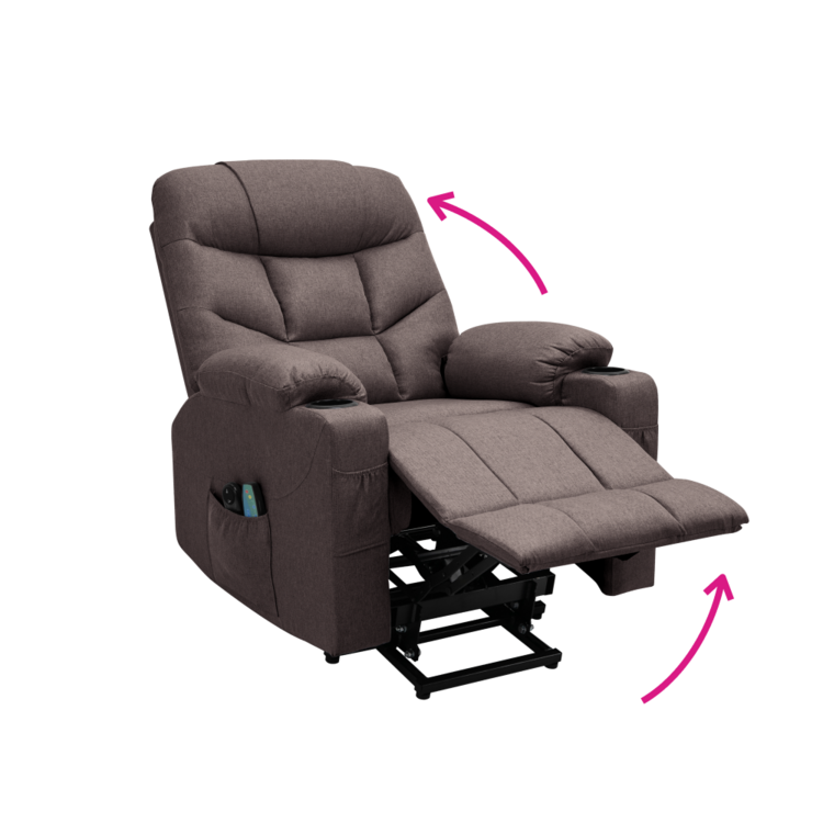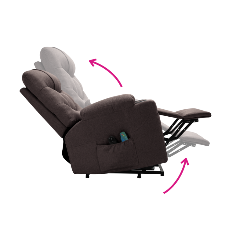 Disponuje funkciou elektrického zdvíhania, ktorá uľahčuje vstávanie a sadanie, čo ocenia najmä seniori. Táto funkcia zvyšuje bezpečnosť a komfort pri každodennom používaní. Pomocou mechanizmu môžete plynule vysunúť podnož a sklopiť operadlo do relaxačnej polohy, čo vám umožní prispôsobiť kreslo podľa potreby.