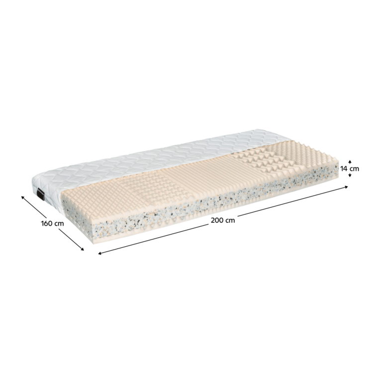 Matrac je zónovaný, čo znamená, že jeho povrch je rozdelený na niekoľko pásiem s odlišnou tvrdosťou a výstuhou. Zóny matraca sú miesta s rozdielnou tvrdosťou materiálu, ktoré poskytujú aj rozdielnu oporu. Tým sa zabráni preležaninám v miestach väčšej záťaže. Matrac sa veľmi jednoducho prispôsobí vášmu telu.