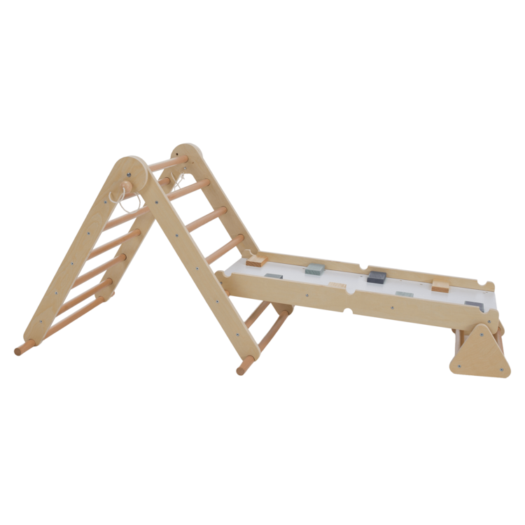 Obojstranná doska 2v1: rebrík a lezecká stena
