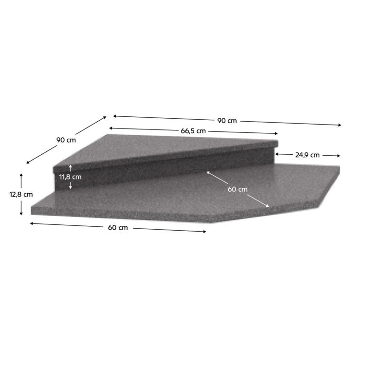 Nadstavec k rohovej skrinke 065 NOVA PLUS DO-001-00 Farba: granit antracit Rozmery (ŠxHxV): 90x90x66,6x66,5 cm Hrúbka materiálu: 38 mm Kvalitný slovenský výrobok. Dodávané v demonte.