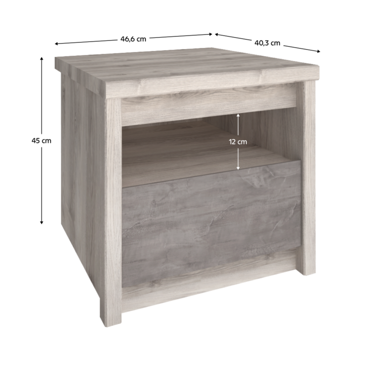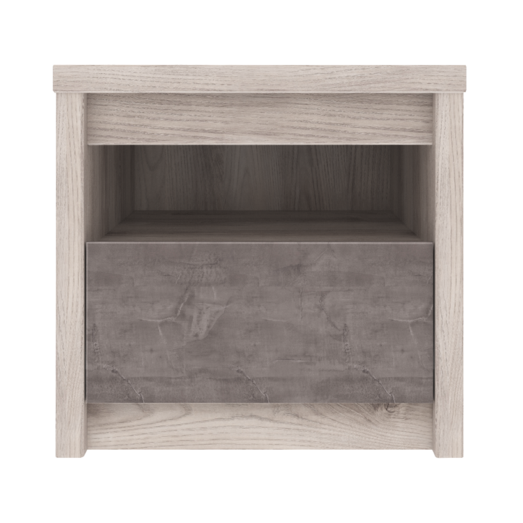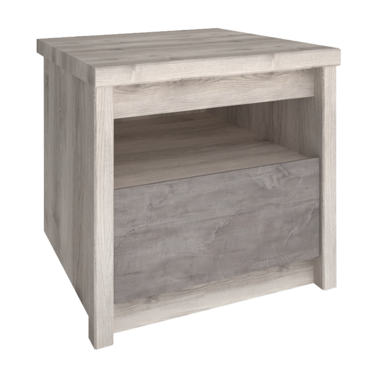 Nočný stolík 1S JESI ponúka praktický úložný priestor v podobe šuplíka a otvoreného priestoru. Ak potrebujete pred spaním odložiť knihu alebo mobil, tento stolík bude vždy po ruke a pripravený na použitie.