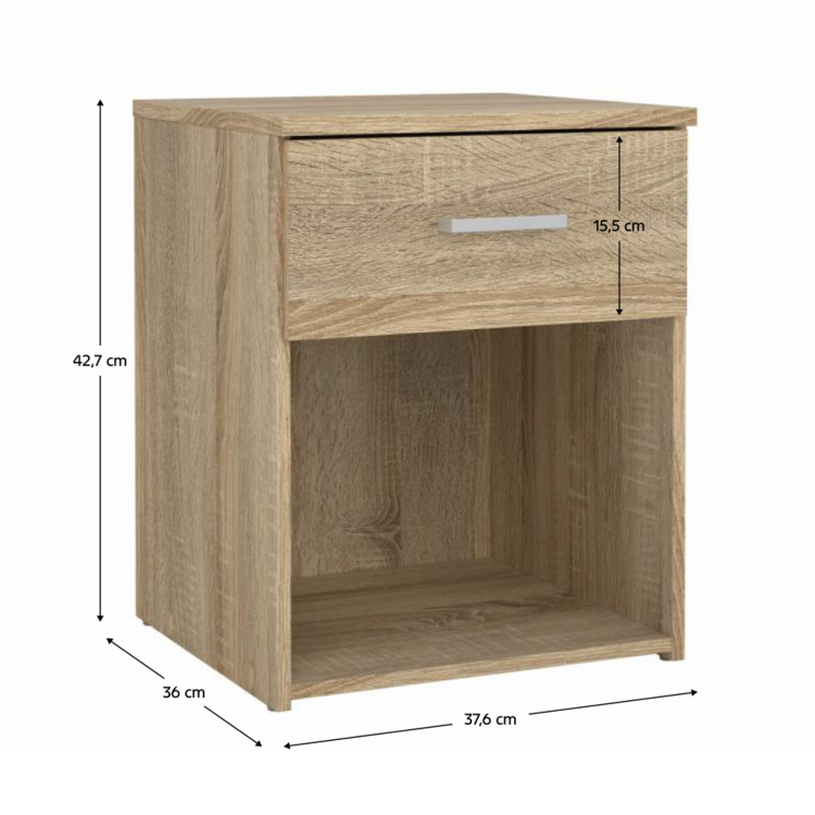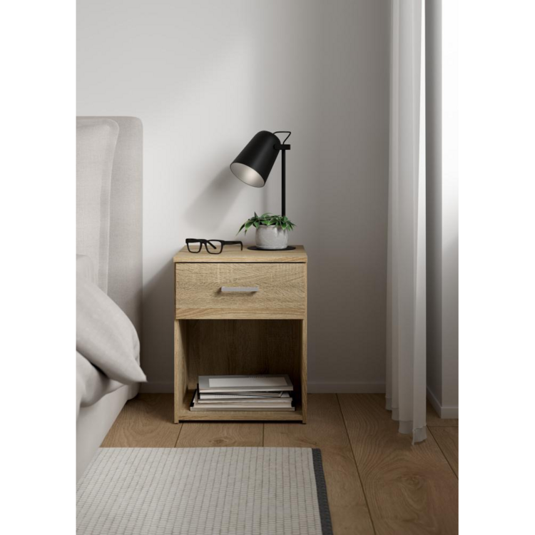 Nočný stolík GARBO, je vyrobený z kvalitnej laminovanej drevotriesky vo farebnom prevedení dub sonoma. Pozostáva z jedného šuplíka. Pristane mu to po pravici i ľavici vašej postele.