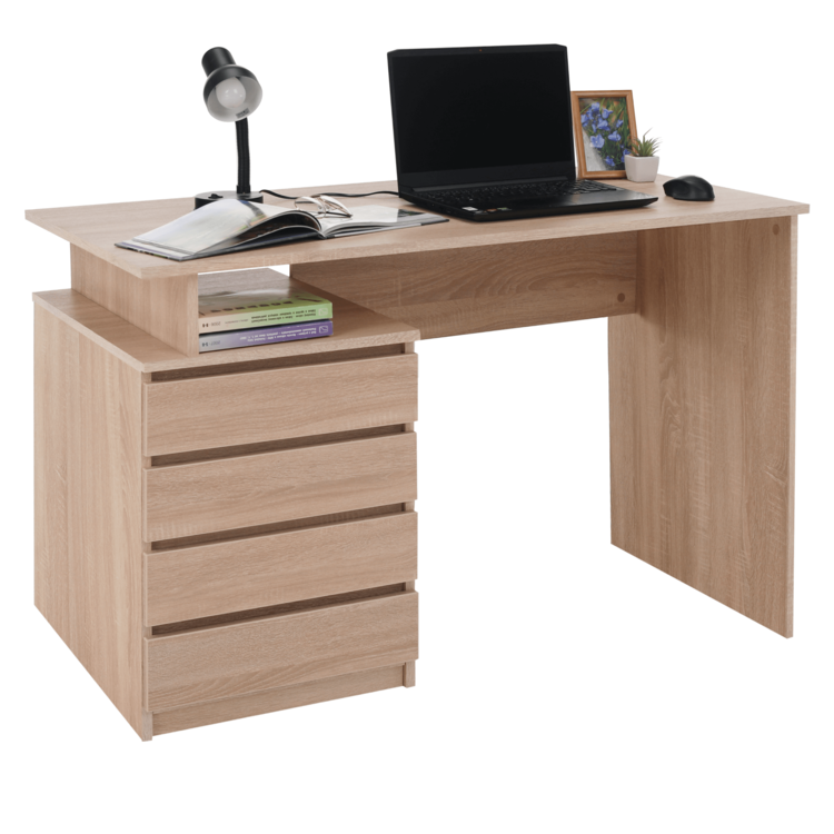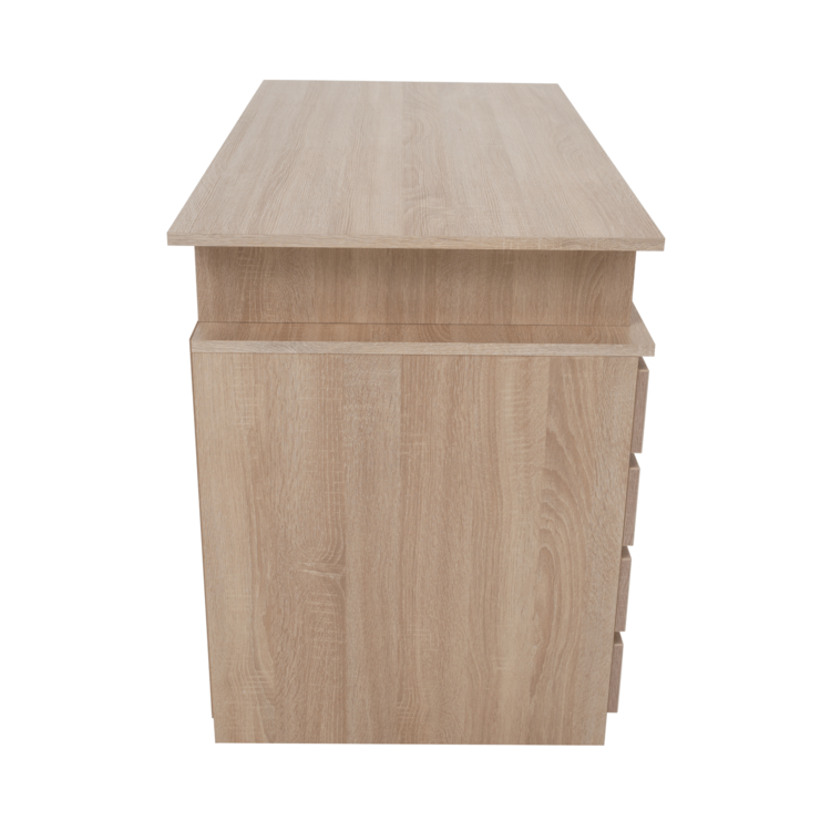 Veľká pracovná plocha a priestranné šuplíky poskytujú dostatok miesta pre vaše kancelárske vybavenie, no zároveň zachovávajú minimalistický vzhľad. Vyrobený je z kvalitnej DTD laminovanej s ABS hranami v nadčasovej farbe dub sonoma.