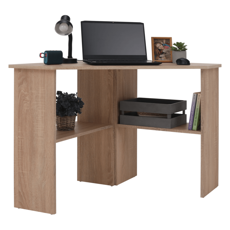 Rohový PC stôl, vyrobený je z materiálu DTD laminovaná v prevedení dub sonoma.
