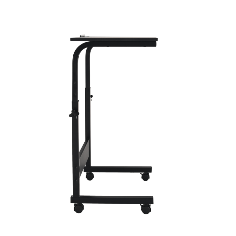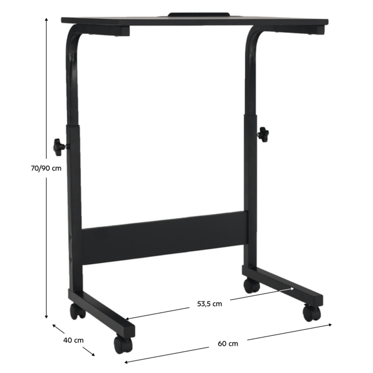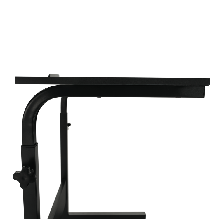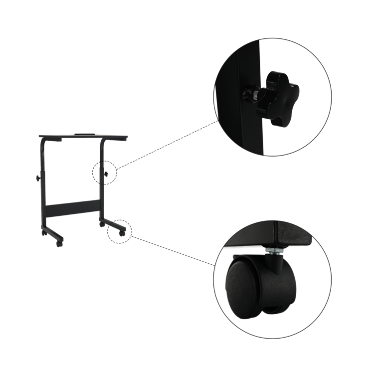 PC stôl Westa vďaka zakomponovaným kolieskam ho môžete ľahko premiestniť všade tam, kde potrebujete a tiež prispôsobiť výške používateľa, čo zabezpečuje jeho funkcia výškovej nastaviteľnosti. Je vybavený zárezom pre tablet, ktorý slúži ako opora tabletu a oceníte ho napríklad pri sledovaní videa. Vyrobený je z kvalitnej MDF s PVC fóliou v čiernom prevedení. Stabilita stola je zaistená vďaka pevnej kovovej konštrukcii. Stôl je okrem spomínaných koliesok vybavený aj dvomi brzdami, ktoré poslúžia pre zabezpečenie jeho stálej polohy.