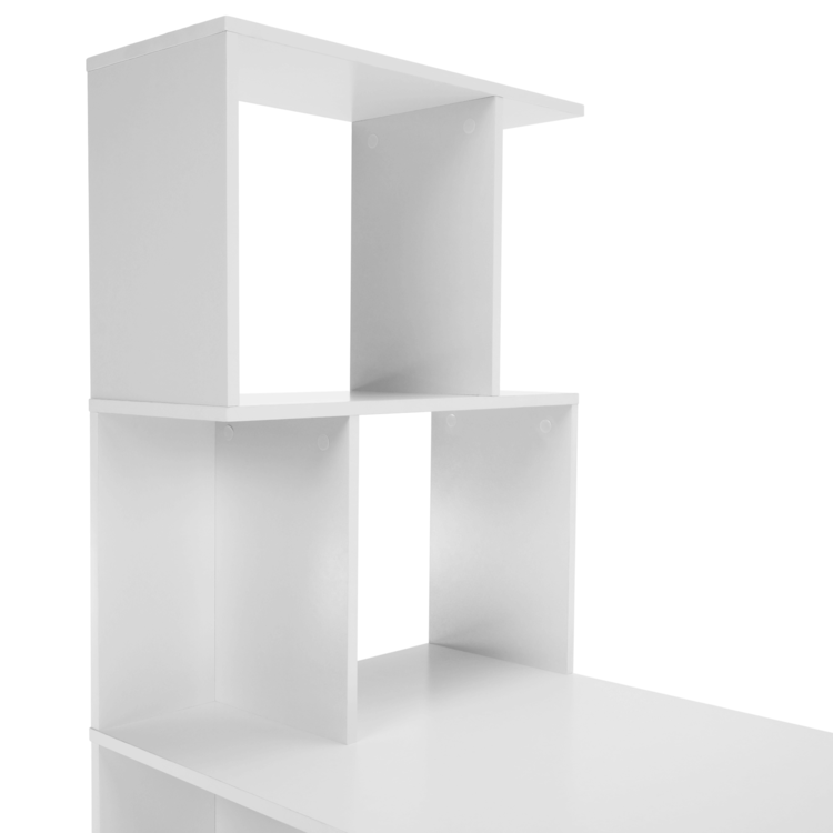 Disponuje pevnou konštrukciou a bielou farbou. Praktické úložné priehradky v podobe otvorených regálov vám umožnia mať všetky potrebné dokumenty po ruke a zároveň prehľadne usporiadané. FLOKI NEW sa hodí do vašej kancelárii alebo študentskej izby. Dekor v bielej farbe rozjasní doslova každý kút. Vyrobený je z laminovanej drevotriesky.