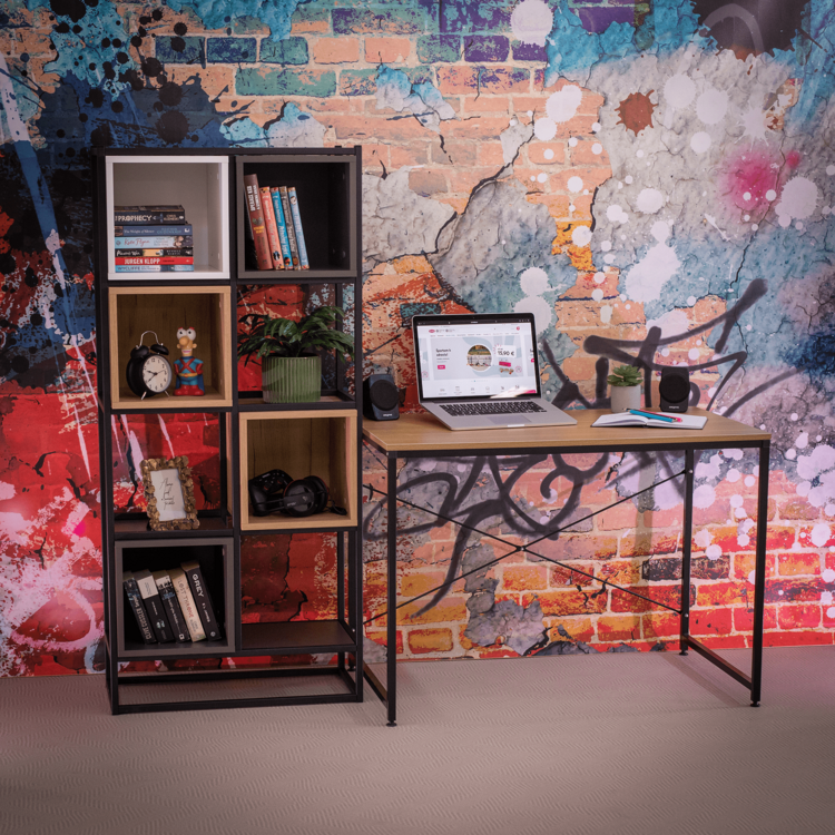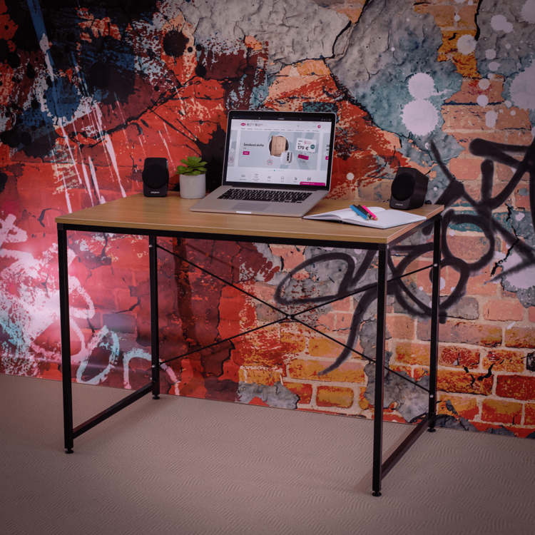 Písací stôl MELLORA je skvelým doplnkom vašej kancelárie, detskej či študentskej izby. Priestranná vrchná doska, vyrobená z laminovanej DTD poskytuje dokonalé miesto na položenie všetkých dôležitých vecí. Stabilná kovová konštrukcia a rektifikačné skrutky na doladenie správnej roviny stola zaručujú pocit komfortu. Farebné prevedenie dub v kombinácií s čiernou robí tento stôl univerzálnym doplnkom každej miestnosti.