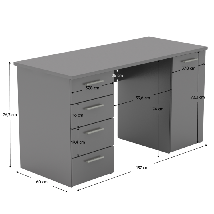 Rozmery (ŠxHxV): 137x60x76,3 cm