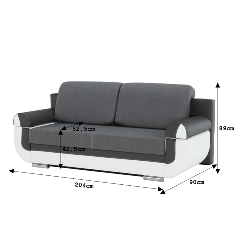 Funkcia rozkladacia zabezpečí pohodlnú plochu na spanie s rozmermi 204x142cm. Pohovka ponúka aj praktický úložný priestor, ktorý výborne poslúži pre odloženie diek, prikrývok alebo vankúšov. Svojím užívateľom poskytuje príjemné bonelové sedenie s výškou sedu 42,5 cm a hĺbkou sedu 52,5 cm.