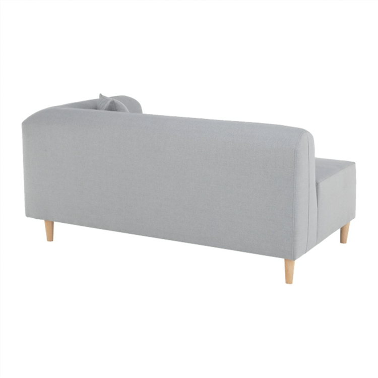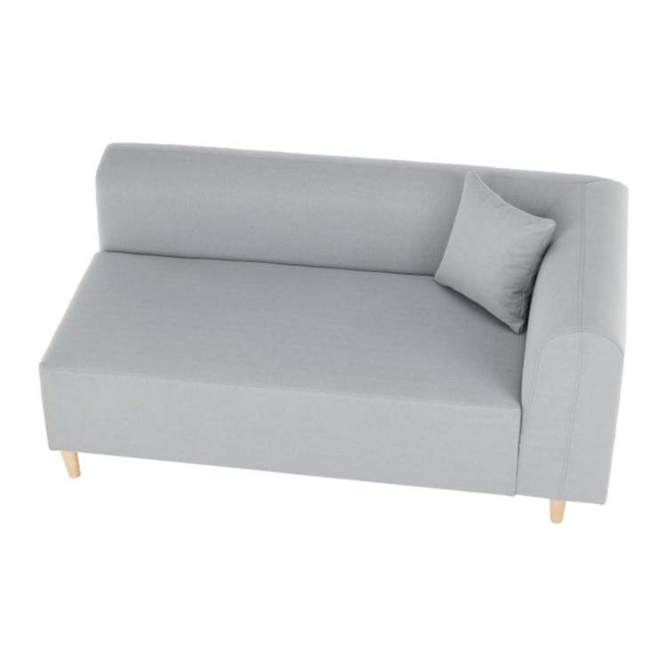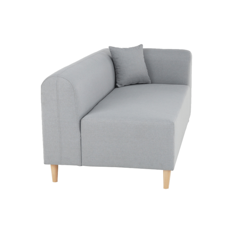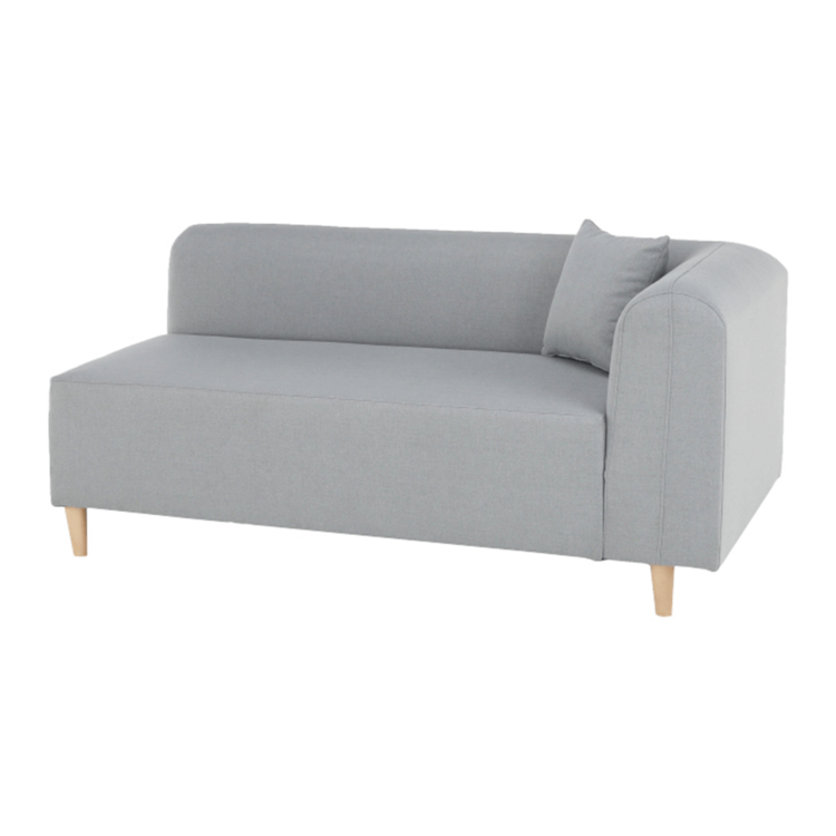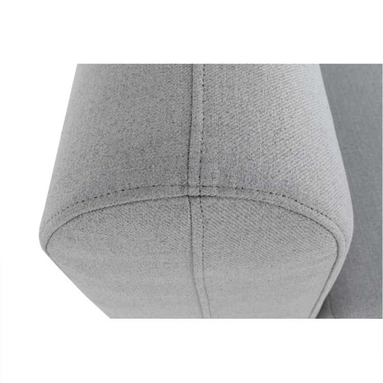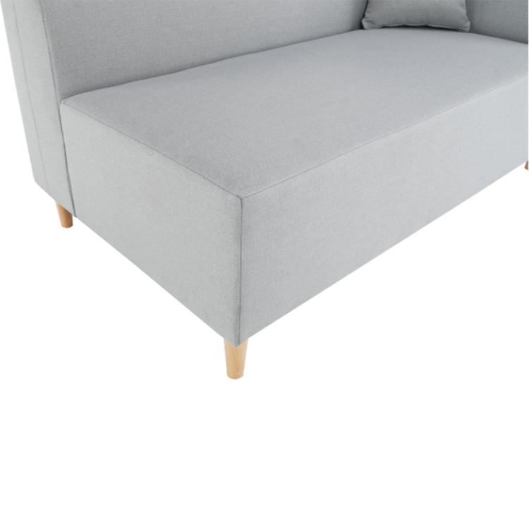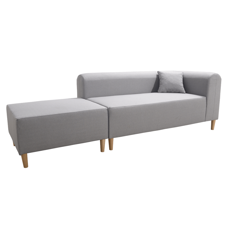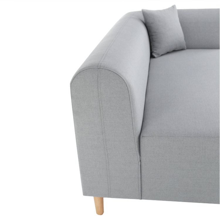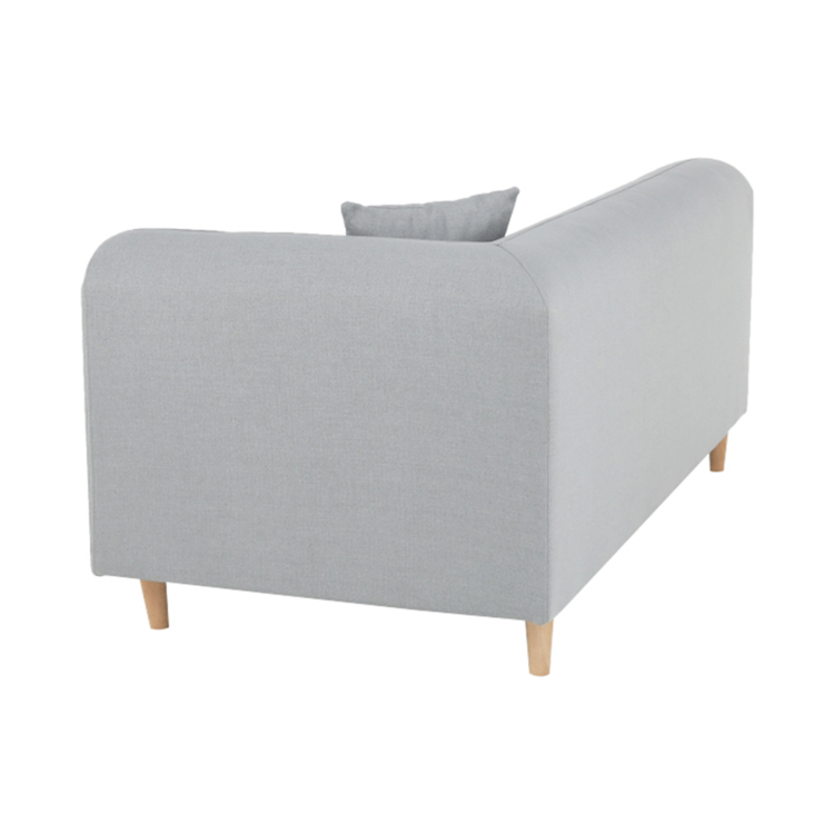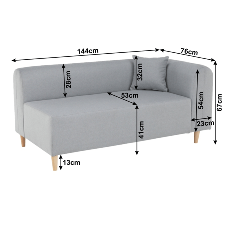 Pohovka je čalúnená sivou látkou, o stabilitu sa starajú drevené nohy vo farebnom prevedení buk.