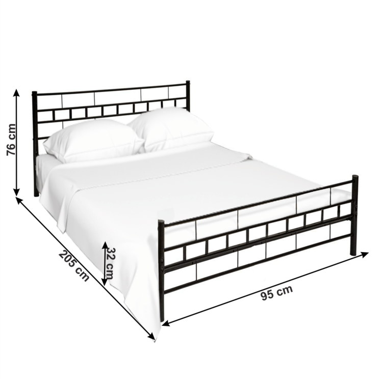 Čierny kov, ktorý tvorí celú posteľ, pôsobí tajomne.Kovové čelá pozdvihujú túto posteľ na najvyššie priečky v rebríčku postelí, a menia ju tak na ozajstný skvost. Stabilitu jej dodávajú kovové nohy, ktoré sú tiež čiernej farby. Súčasťou je kovový rošt. Tajgi si zamilujete, a to nielen pre pohodlie, ktoré ponúka, ale aj pre jej imidž. Posteľ je dodávaná bez matraca, je potrebné zakúpiť matrac s rozmerom 90x200 cm z našej ponuky.