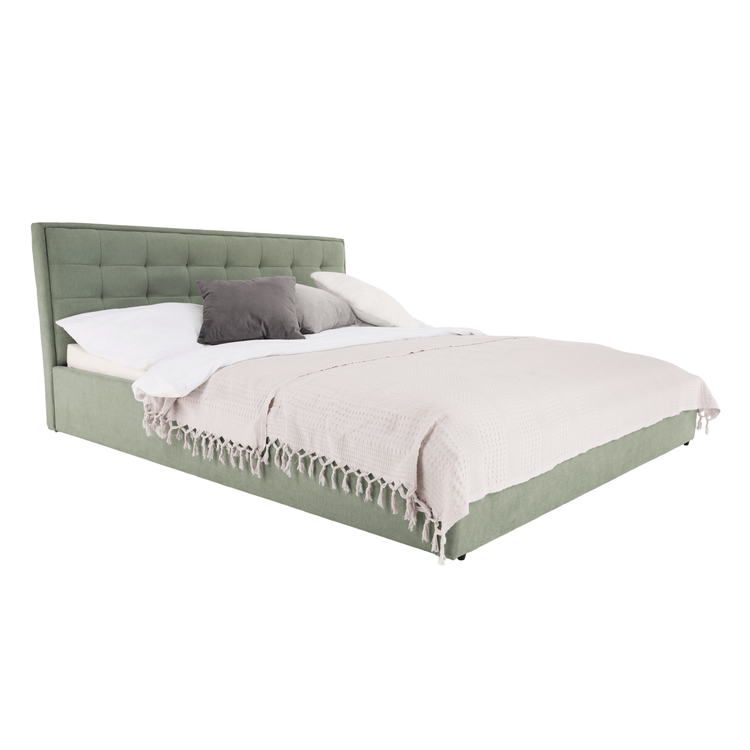 Pýši sa vysokým prešívaným čelom. Čalúnené čelo je mäkké, no zároveň pevné. Celá posteľ je čalúnená látkou, ktorá sa ľahko udržiava. Disponuje tiež úložným priestorom, ku ktorému sa dostanete zdvihnutím lamelového roštu a matraca. Posteľ je dodávaná s lamelovým roštom, bez matraca. Pozrite si našu ponuku matracov s rozmerom 160x200 cm.