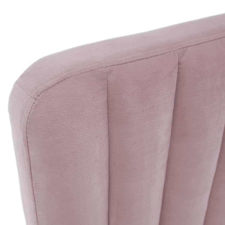V nadčasovej ružovej farbe, ktorá bola vybratá zo širokej škály farieb. Na čalúnenie bola použitá Velvet látka, ktorá je príjemná na dotyk. Posteľ sa môže pochváliť vysokým čalúneným čelom, ktoré má navyše dekoratívne šitie. A nezabúdajme na predné čelo, ktoré je taktiež dekoratívne prešité. Kaisa stojí na kovových nohách v prevedení gold chróm zlatý matný. Posteľ KAISA je komfortná, aj nápaditá. Spánok a relax to sú dve veci, na ktorých jej záleží. Dodávame ju s lamelovým roštom. Odporúčame zakúpiť matrac s rozmerom 140x200 cm z našej ponuky.