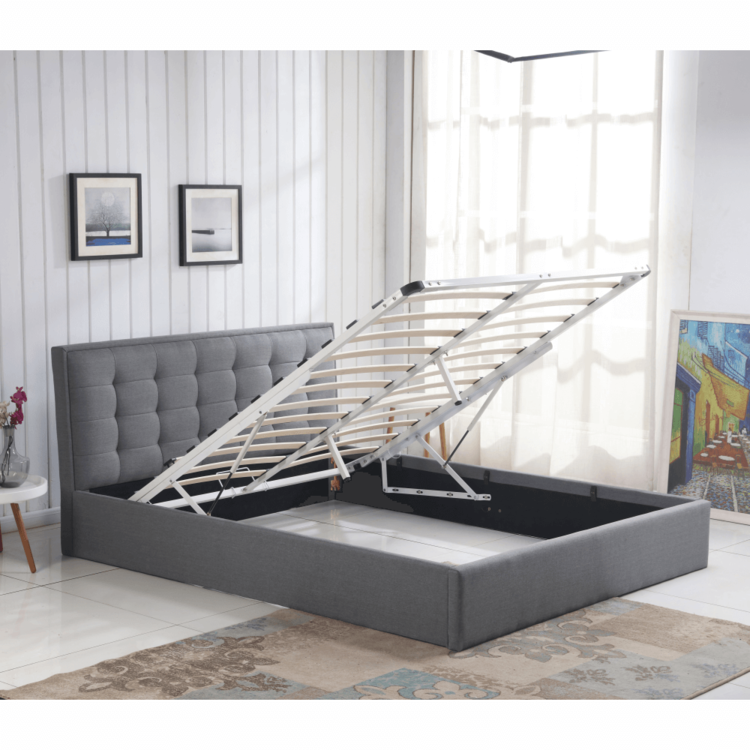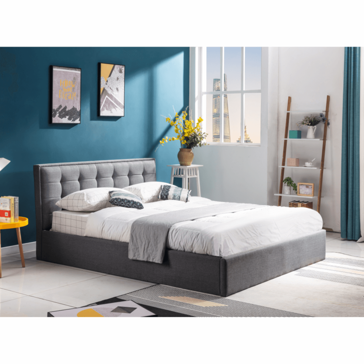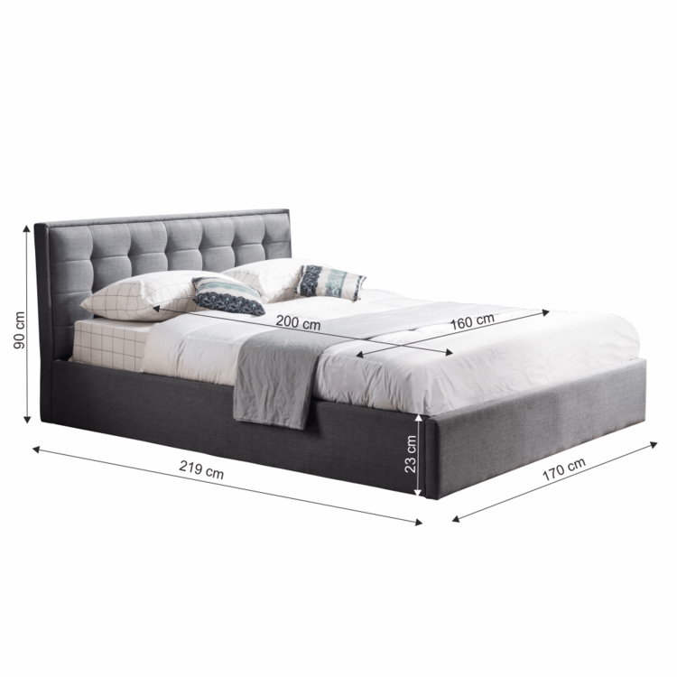 Vysoké prešívané čelo, čalúnené je mäkké, no zároveň pevné. Celá posteľ je čalúnená látkou, ktorá sa ľahko udržiava. Disponuje tiež úložným priestorom, ku ktorému sa dostanete zdvihnutím lamelového roštu a matraca. K posteli odporúčame zakúpiť matrac z našej ponuky.