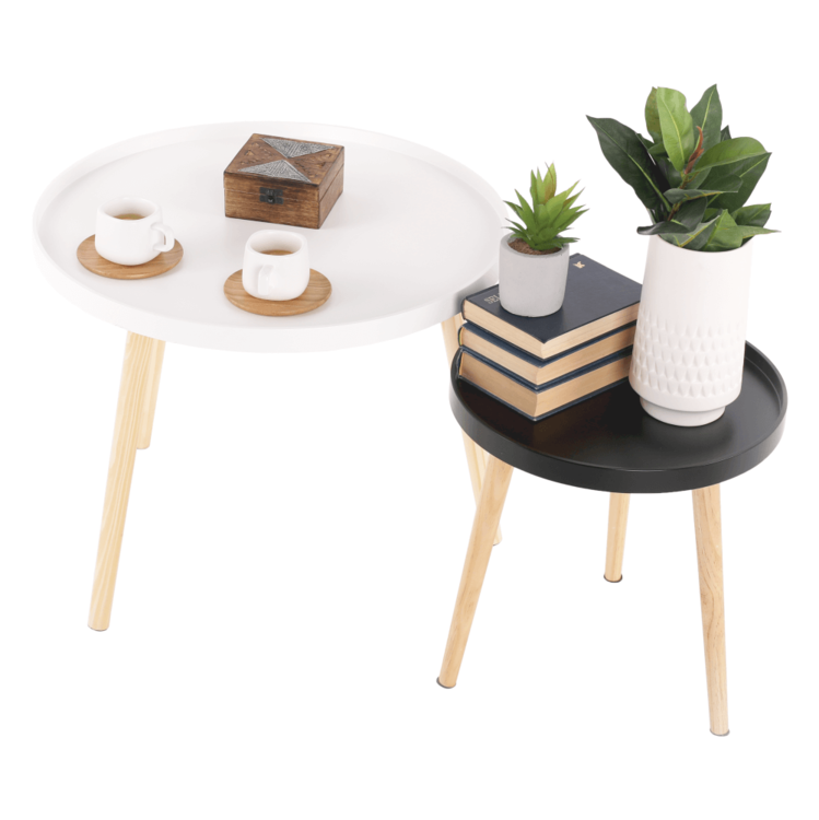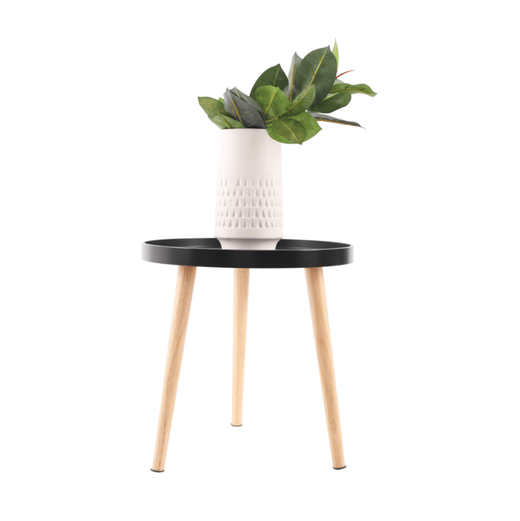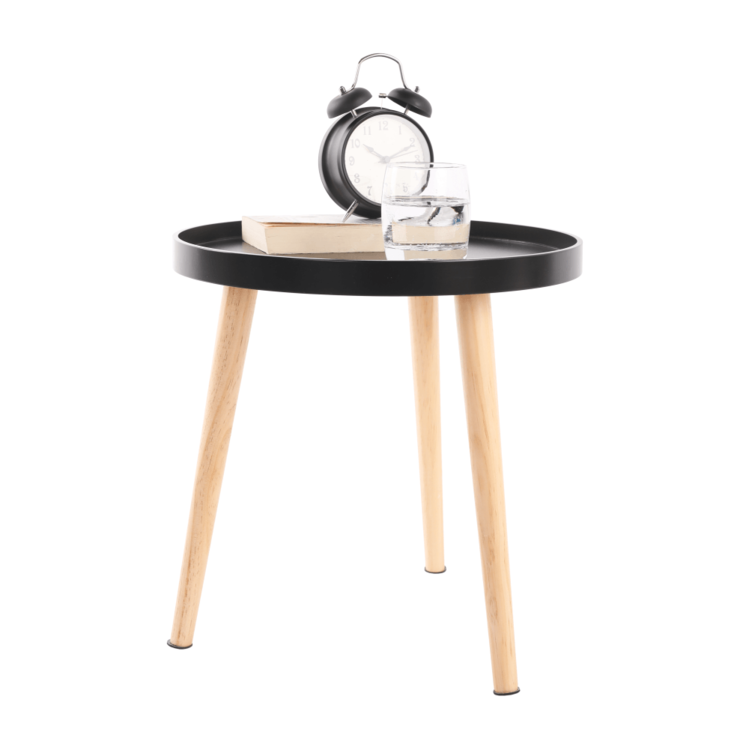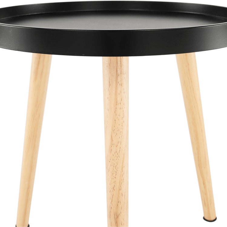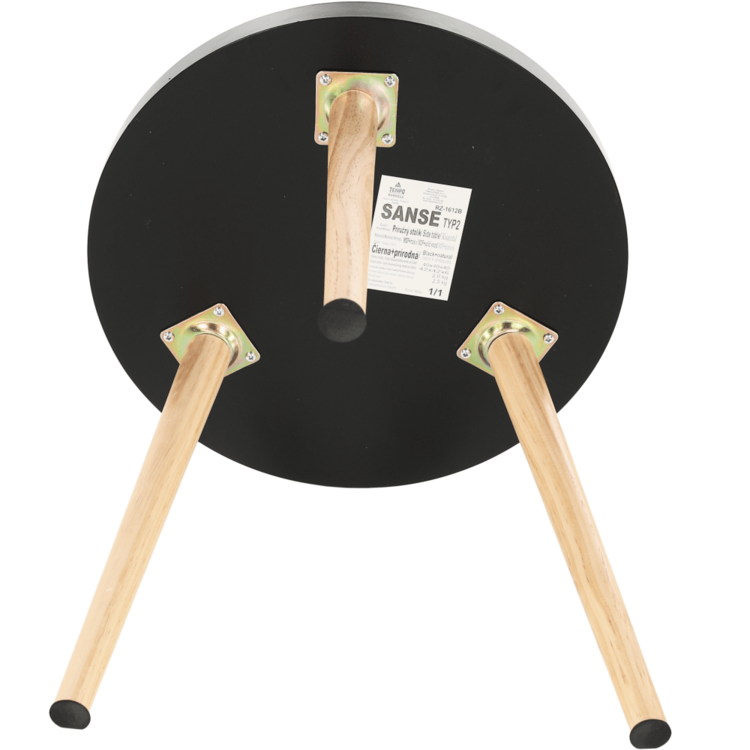 Svoje miesto nájde pri sedačke, pohovke, kresle, ale aj samostatne ako dekorácia. Plát je vyrobený je z MDF, nohy sú z masívu. Kombinácia čiernej a prírodnej farby.