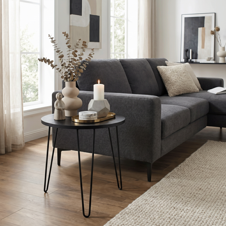 V čiernej farbe s kovovými nohami zapadne do každého interiéru. Kvalitné materiály MDF a kovové nohy zvýraznia jeho eleganciu.
