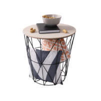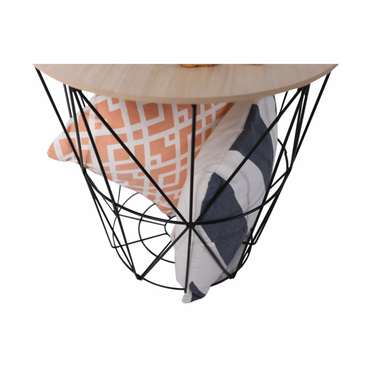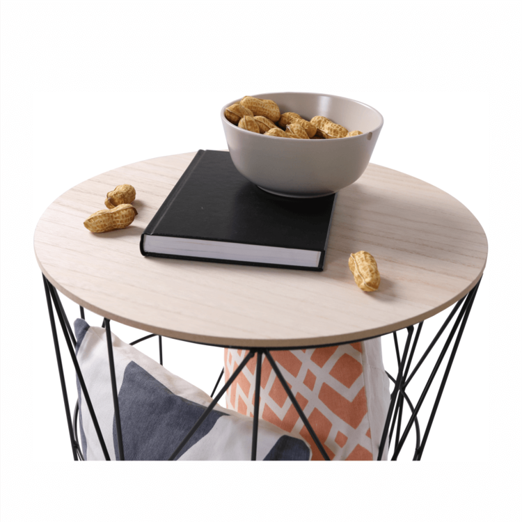 Hlavným pilierom je čierna kovová konštrukcia, ktorá vytvára oporu pre vrchnú časť vyrobenú z MDF v prírodnom prevedení. Vrchná doska je snímateľná, takže stolík poskytuje dostatok úložného priestoru. Dobre poslúži na odkladanie kníh, novín, časopisov, no môže stáť aj prázdny ako dizajnový prvok. Zdôrazňuje priestrannosť, je ľahký a jednoducho sa sním dá manipulovaťa presúvať ho po miestnosti.