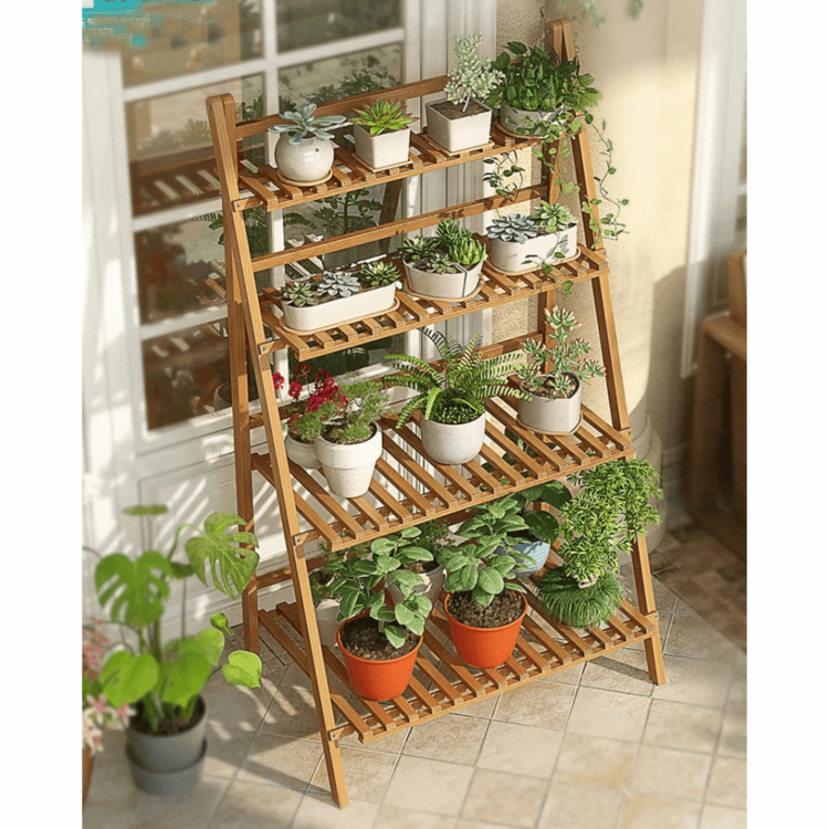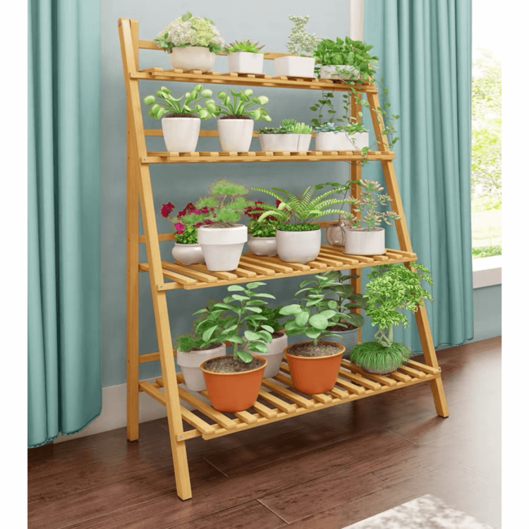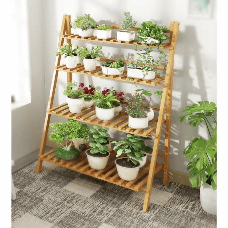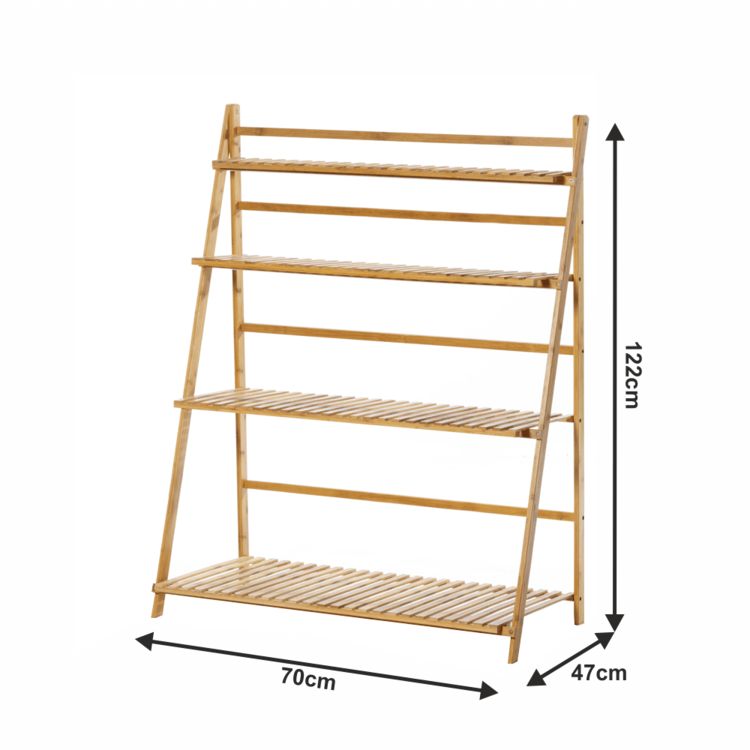 Skladací regál NEPEL TYP 2 krásne osvieži akýkoľvek interiér či exteriér. Obývacia izba, zimá záhrada, vonkajšia terasa alebo balkón? Bylinky a rastliny ocenia dostatok priestoru, ktorý regál poskytuje. Regál je vyrobený z bambusu v prírodnom prevedení a disponuje 4 policami s rôznou hĺbkou. Regál je navyše skladací. Vďaka tomu ho môžete jednoducho uschovať na zimnú sezónu, pričom nezaberie veľa miesta.