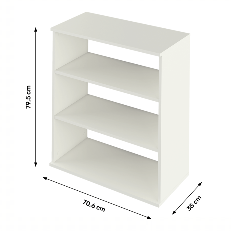 Vyrobený je z DTD laminovanej v pôvabnom prevedení biela. Okrem dizajnu ponúka aj praktický úložný priestor v podobe dvoch políc, ktoré predeľujú odkladací priestor na tri časti. Vynikne v akejkoľvek miestnosti, či ho umiestnite do predsiene, obývačky, detskej alebo študentskej izby.
