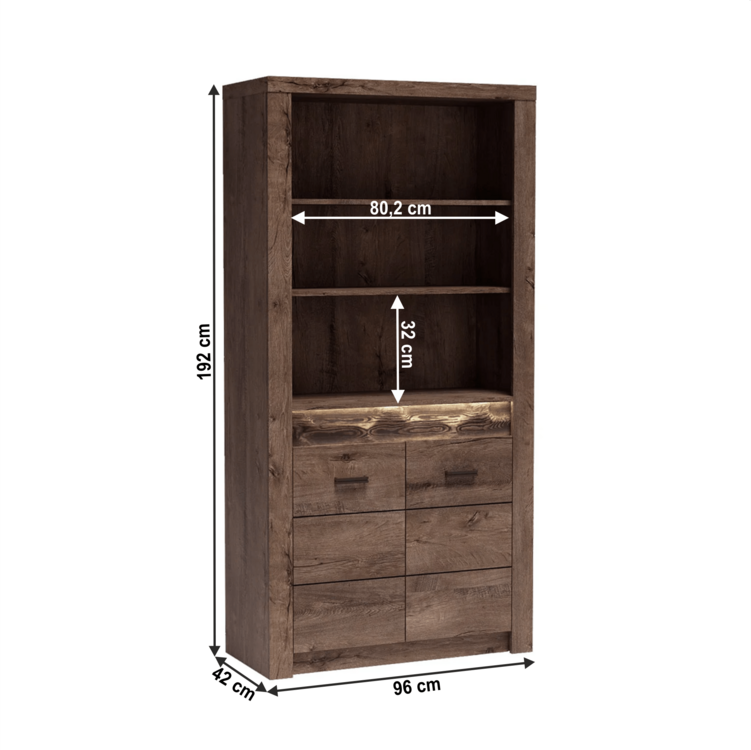 Disponuje jednou dvojdverovou skrinkou a dvomi otvorenými poličkami, ktoré delia priestor na 3 úložne miesta.