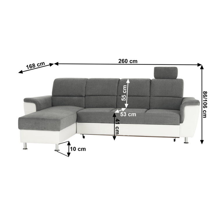 Rozmery (ŠxHxV): 260x168x86/106 cm