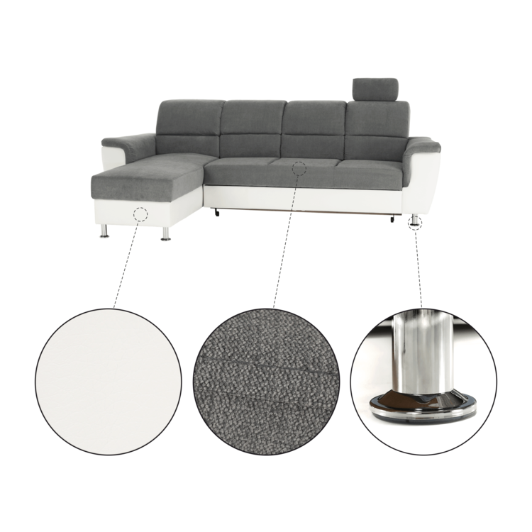 Celočalúnená rohová rozkladacia sedacia súprava, ľavá, SANTIAGO ROH MALÝ