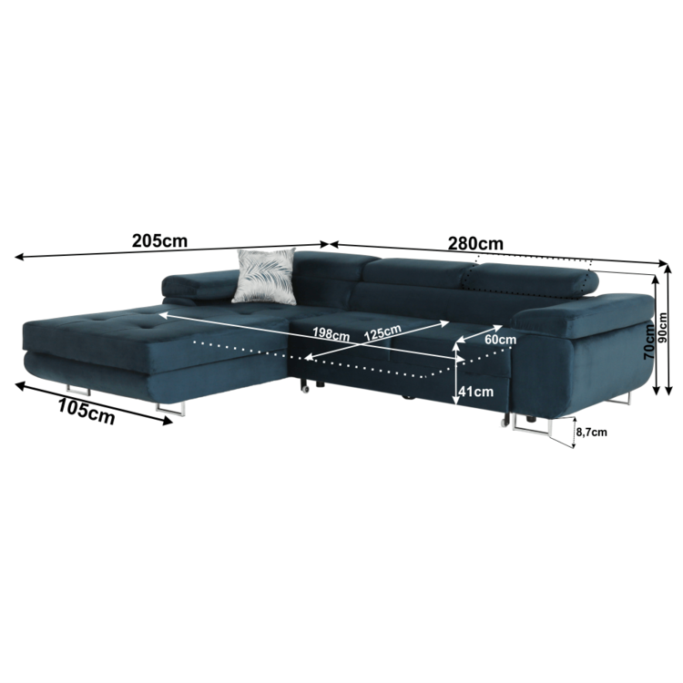 Rozmery (ŠxHxV): 280x205x70/90 cm