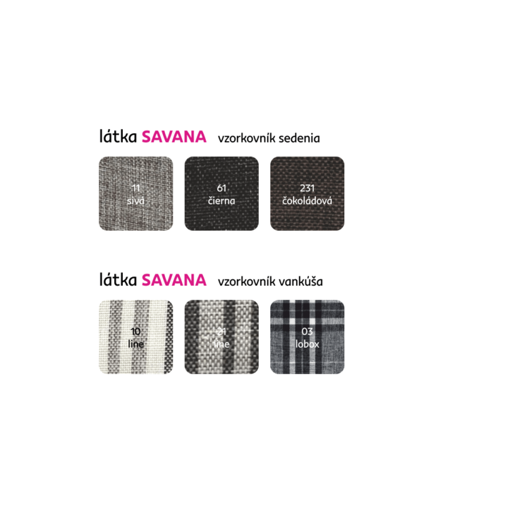 Ponúkame možnosť objednať z vyobrazených farebných prevedení. Cena sedačky sa pri individuálnej objednávke líši, potrebné je zaplatiť 10% zálohu.
