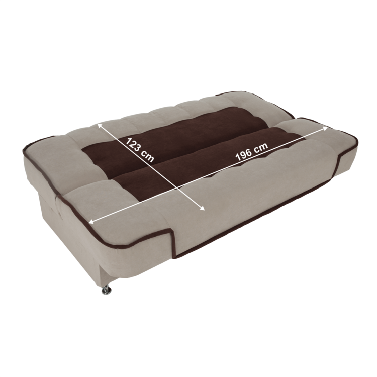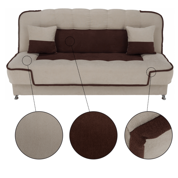 Pohovka PERSI je jednoduchá, ale štýlová. Ideálna do akéhokoľvek interiéru. Je čalúnená látkou Soro v kombinácií béžovej a hnedej. Pýši sa možnosťou rozkladu, ktorý môžete využívať nielen na občasné spanie, ale aj na každodenné spanie. Plocha na spanie predstavuje rozmer 123x196 cm. O rozklad sa poskladá funkcia klik klak, ktorá umožní nastaviť operadlo pohovky do zvislej a vodorovnej polohy. Má priestranný úložný priestor a komfort sedenia a spania zabezpečuje bonelová pružina s pur penou. PERSI je postavená na kovových nožičkách v chrómovom prevedení. Súčasťou pohovky sú dva dekoratívne vankúšiky.