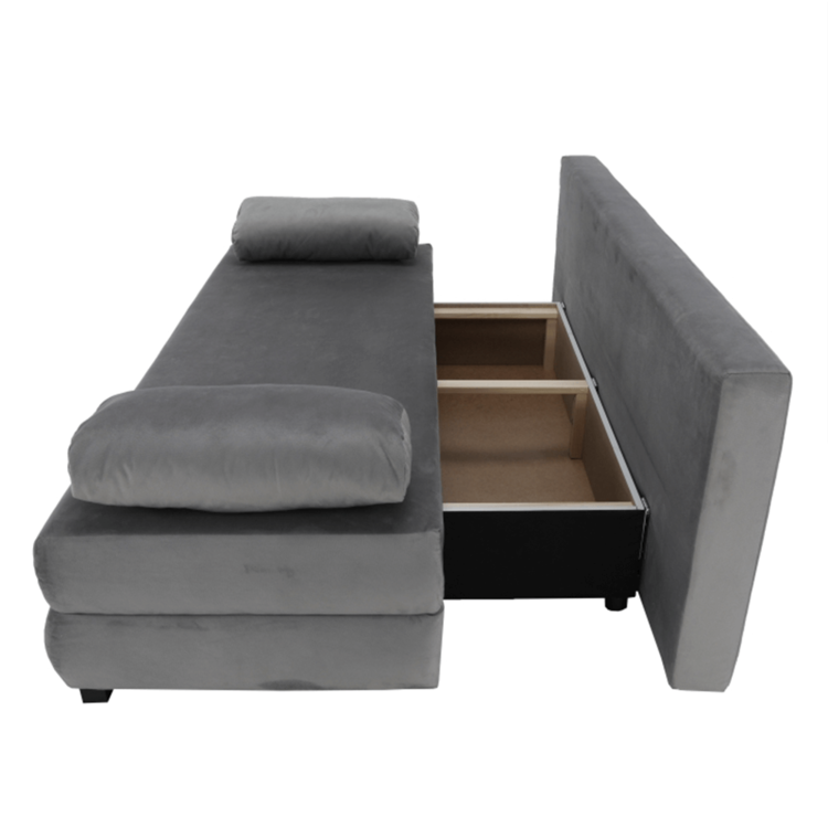 Vďaka svojim rozmerom sa hodí najmä do menších priestorov. Možnosť rozkladu na lôžko hravo vyrieši dilemu, kam cez noc uložiť hostí. Je vhodná na každodenné spanie. Pohovka je čalúnená sivou látkou Aria 15, ktorá tvorí nádherný kontrast s tyrkysovými vankúšmi. CLIV má aj úložný priestor, ktorý môžete využiť napríklad na odloženie rezervných prikrývok a diek.