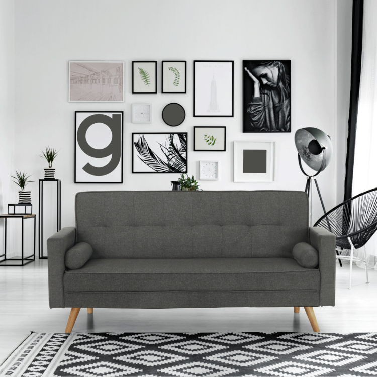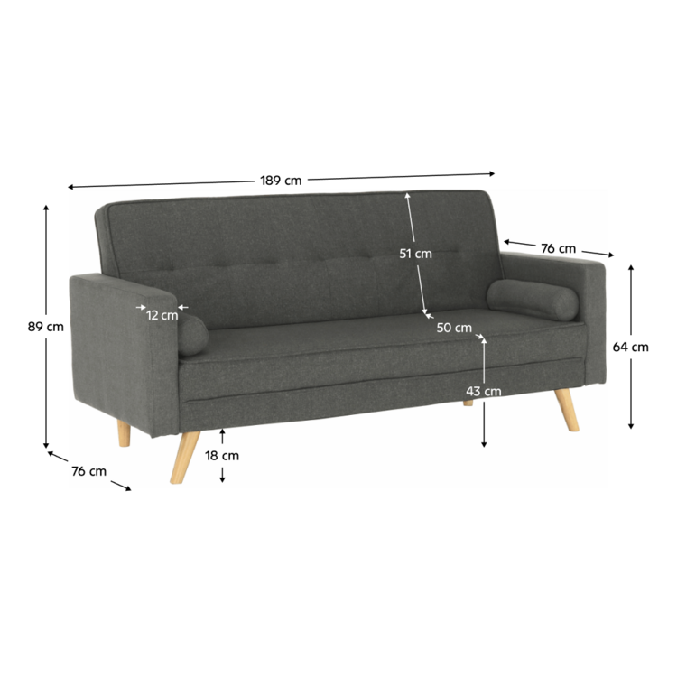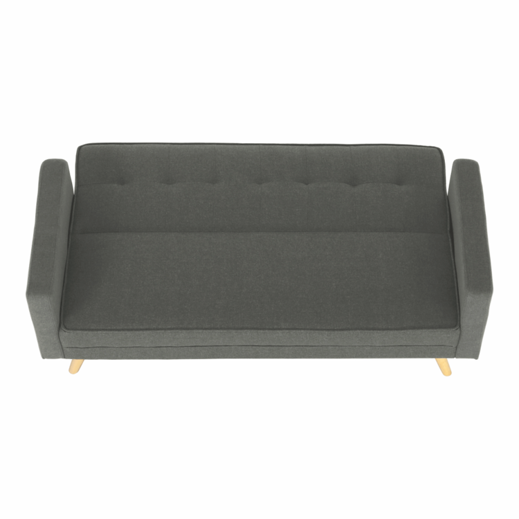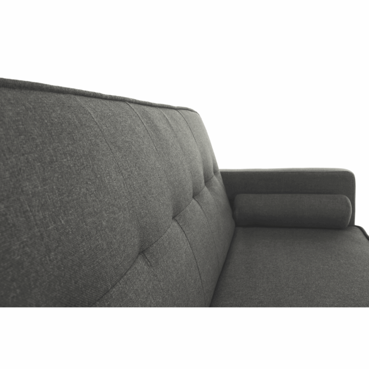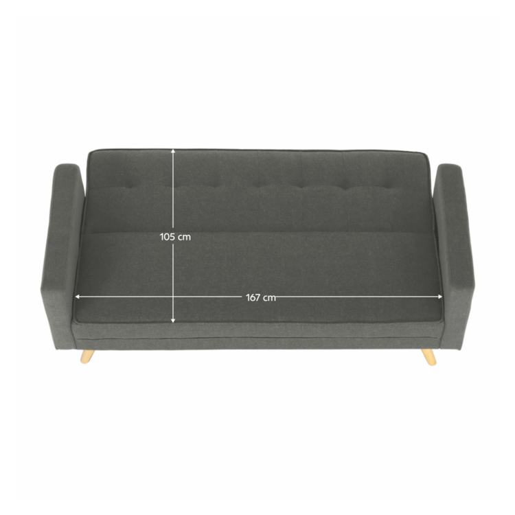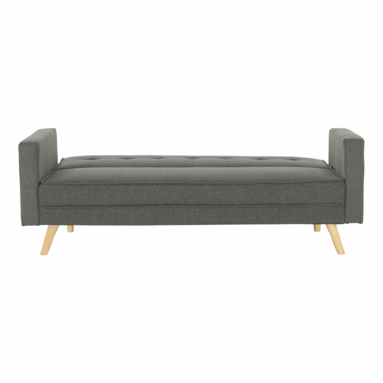 Poslúži aj ako príležitostné spanie. Je rozkladacia, ľahko ju premeníte na lôžko s plochou na spanie 170x105 cm. Čalúnená je neutrálnou sivou látkou, ktorá sa ľahko kombinuje s ďalšími farbami a vzormi. Pohovka stojí pevne na drevených nožičkách. Okrem klasickej pohovky a rozloženého lôžka na spanie ju viete zaistiť aj v relaxačnej polohe. Sklopte trochu operadlo, oveľa lepšie sa vám bude oddychovať pri obľúbenom seriáli či s dobrou knihou v rukách.