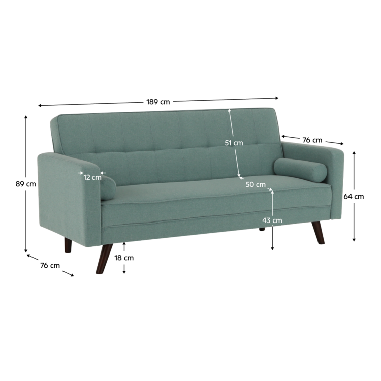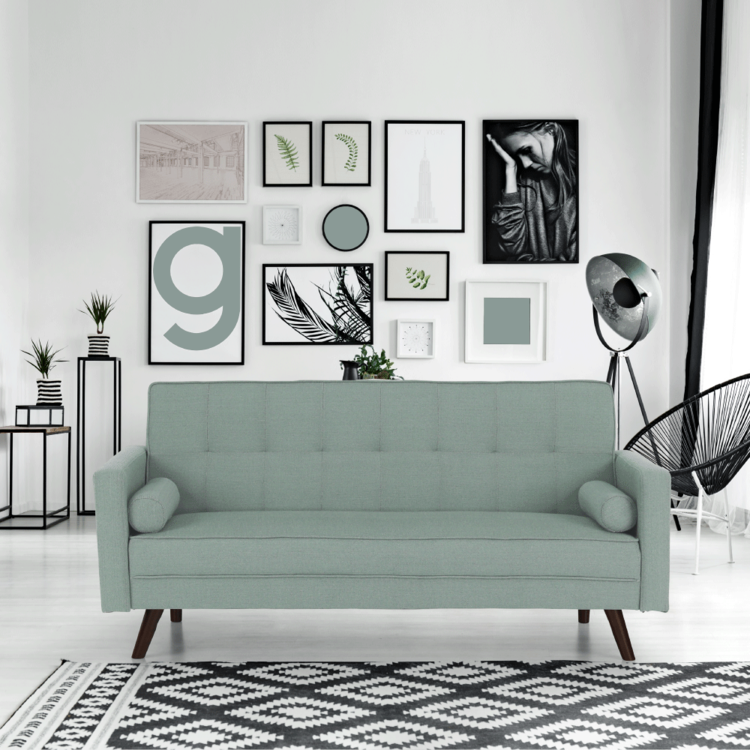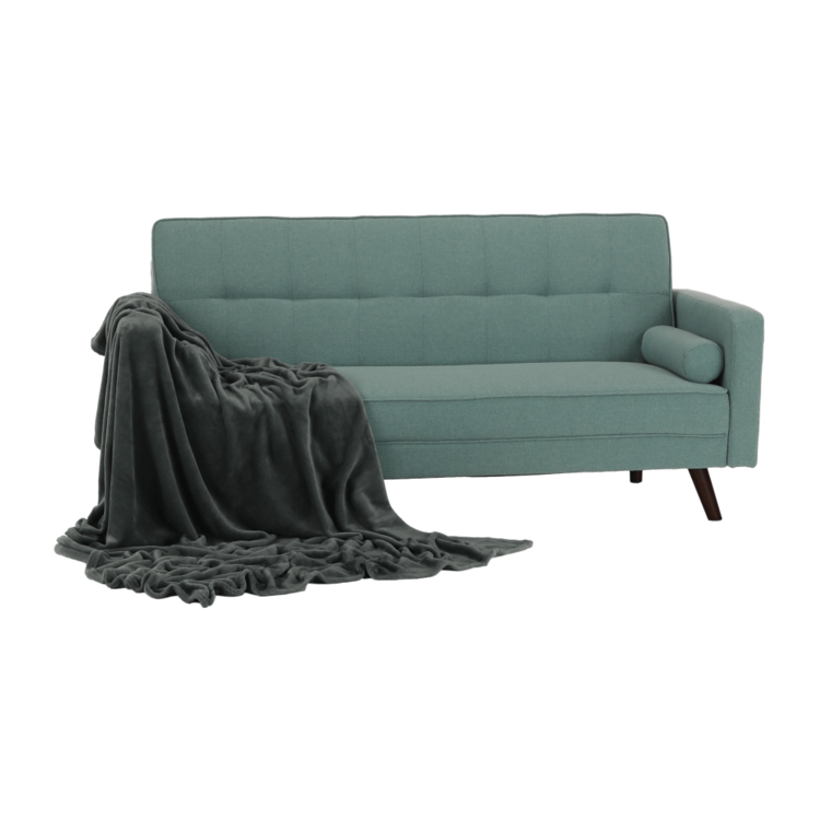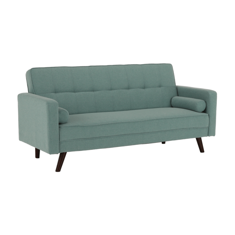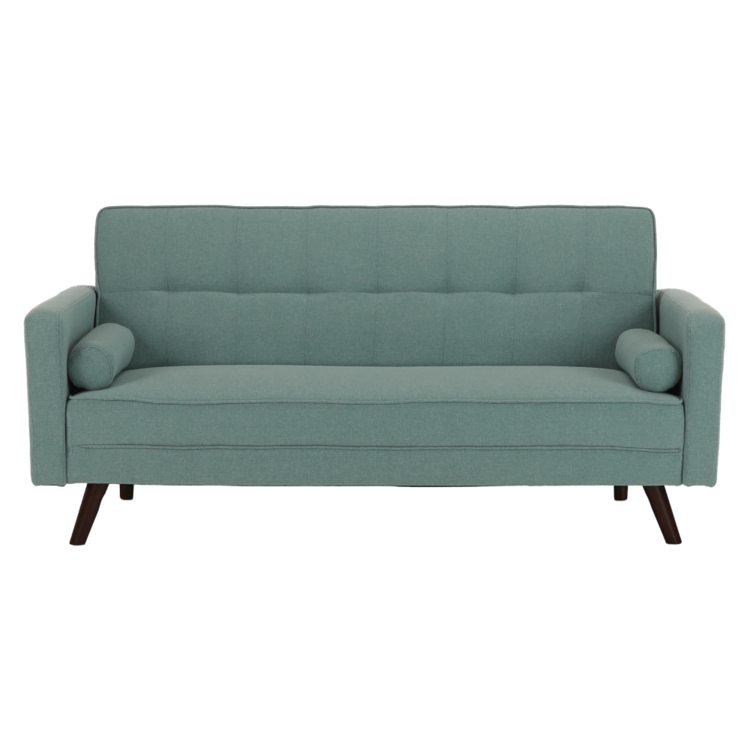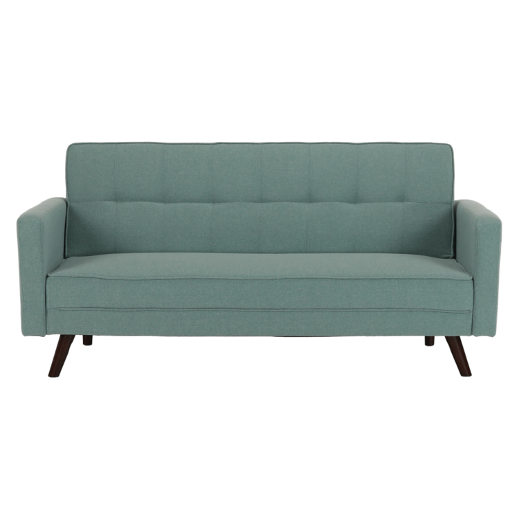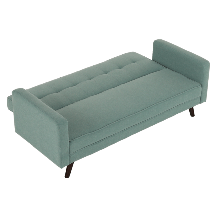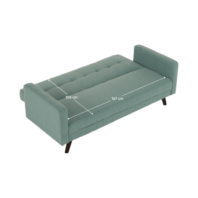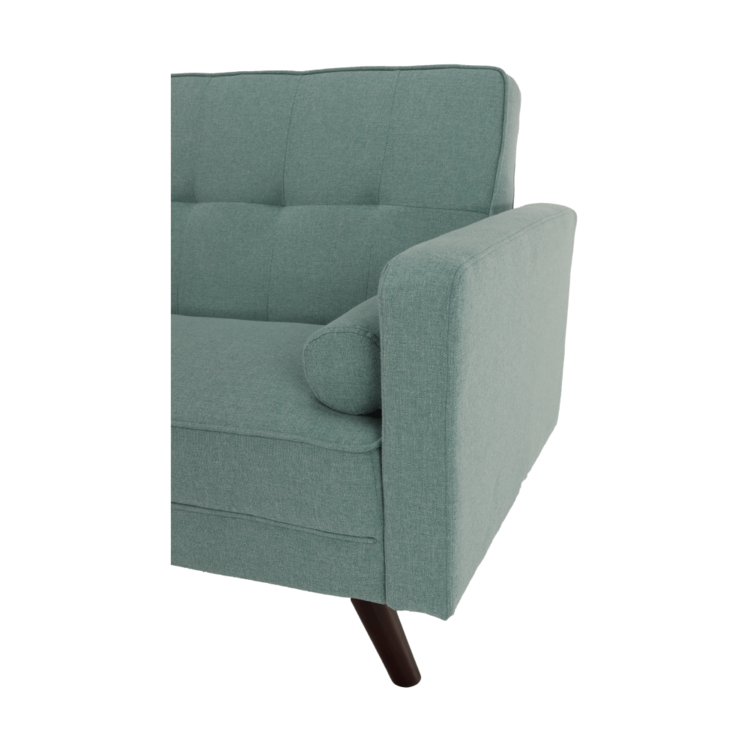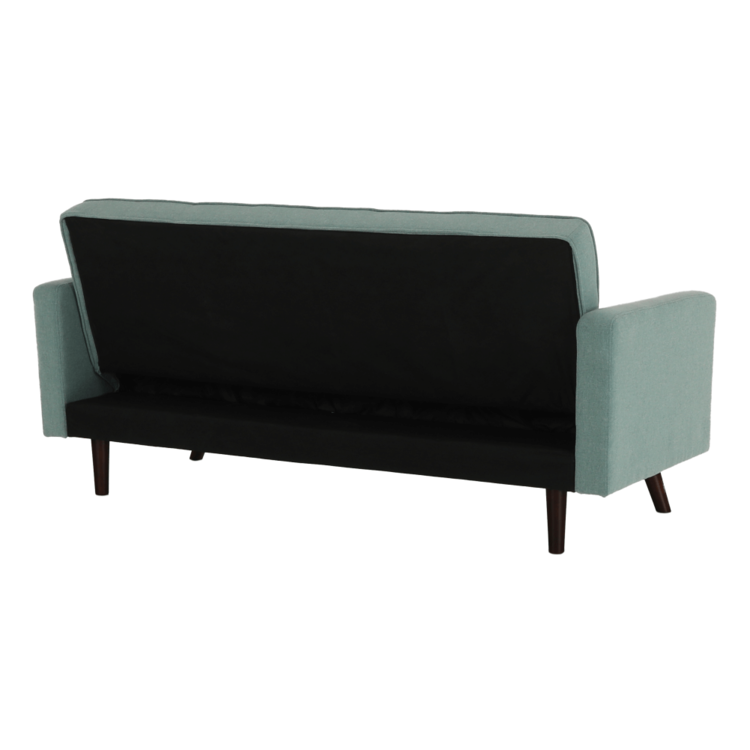 Poslúži aj ako príležitostné spanie. Je rozkladacia, ľahko ju premeníte na lôžko s plochou na spanie 170x105 cm. Čalúnená je zeleno-mentolovou látkou, ktorá sa ľahko kombinuje s ďalšími farbami a vzormi. Pohovka stojí pevne na drevených nožičkách. Okrem klasickej pohovky a rozloženého lôžka na spanie ju viete zaistiť aj v relaxačnej polohe. Sklopte trochu operadlo, oveľa lepšie sa vám bude oddychovať pri obľúbenom seriáli či s dobrou knihou v rukách.