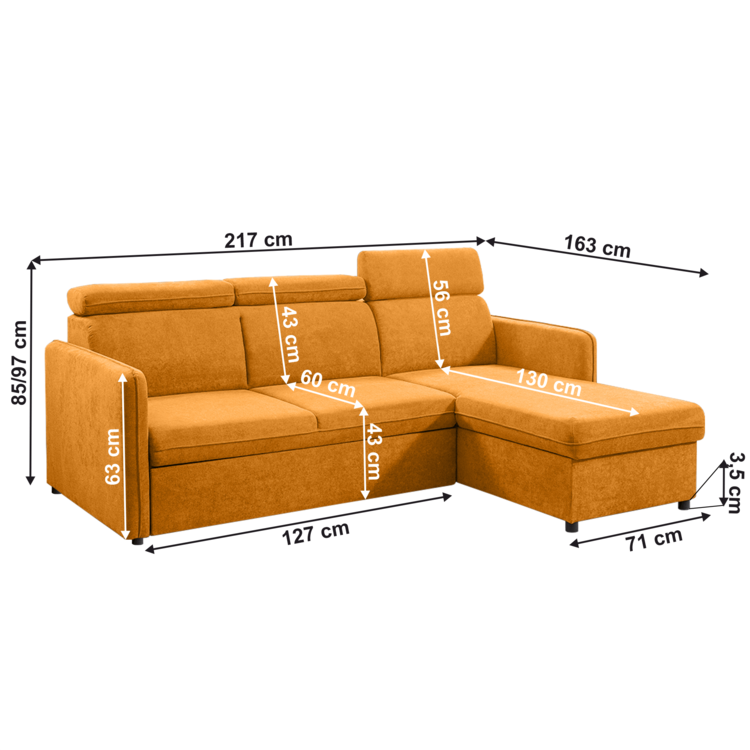 Rozmery (ŠxHxV): 220x165x84/97 cm