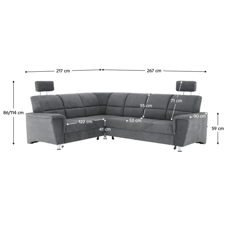 Rozmery (ŠxHxV): 267x217x86/114 cm