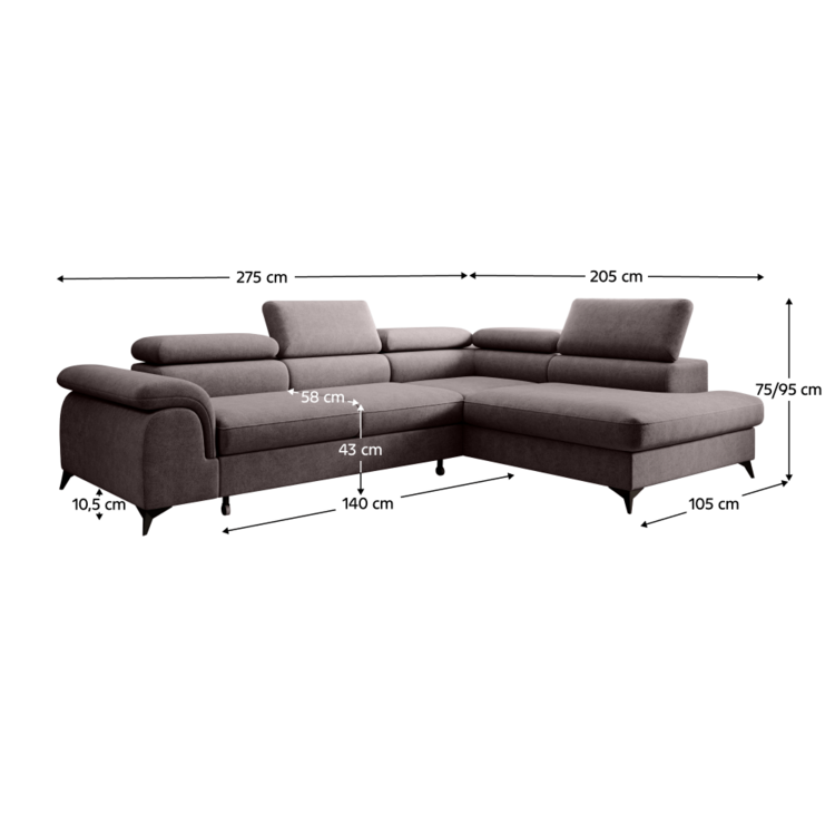 Rozmery (ŠxHxV): 275x205x75/95 cm