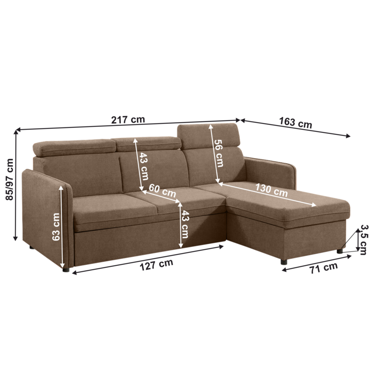 Rozmery (ŠxHxV): 220x165x84/97 cm