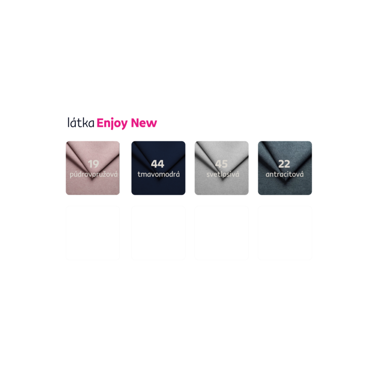 Možnosť objednania v 4 farebných odtieňoch látky Enjoy New. Cena sedačky sa pri individuálnej objednávke líši, potrebné je zaplatiť 10% zálohu.