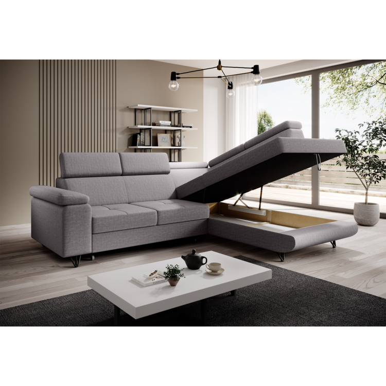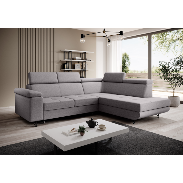 Sedacia súprava JOGI ROH je priestranná sedačka s množstvom kvalít. Je celočalúnená, čo znamená, že si ju môžete umiestniť kdekoľvek, teda aj doprostred miestnosti. Oblečená je do látky Soro v svetlosivej farbe. Pýši sa polohovacími opierkami hlavy, ktoré znásobujú pocit komfortného sedenia. Disponuje funkciou rozkladu, ktorý ju v jednom kroku premení na plnohodnoné lôžko s plochou na spanie 130x195 cm. Nesie v sebe úložný priestor, ktorý sa nachádza v otomanovej časti. Výplň sedacej súpravy predstavuje pružina falista kombinovaná s pur penou. Postavená je na dizajnových kovových nožičkách v čiernej farbe.